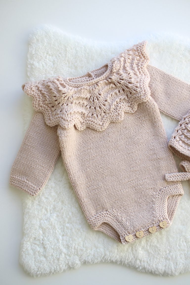 Alpaca Blend Baby Romper and Bonnet Set – Unisex Knit Outfit