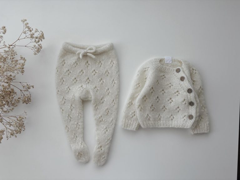 Alpaca Baby Sweater and Footed Pants Set – Cream Knit Outfit
