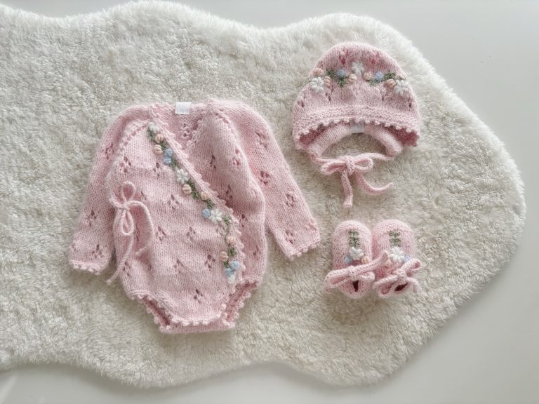 Embroidered Angora Baby Romper Set – Bonnet & Booties, Newborn Outfit