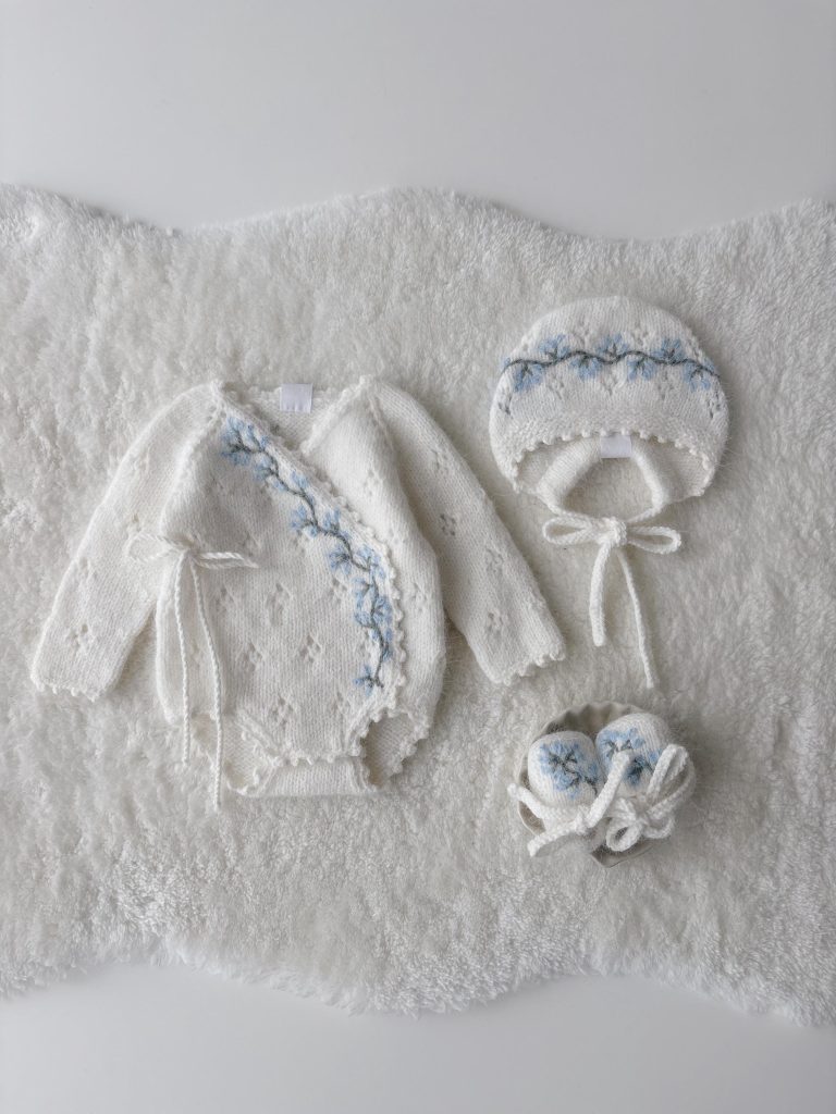 Embroidered Baby Cardigan and Bonnet Set – Cream Alpaca Knit