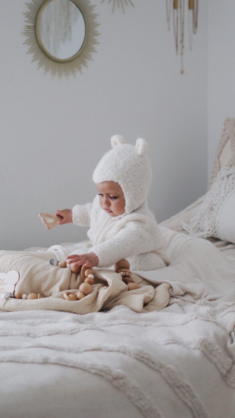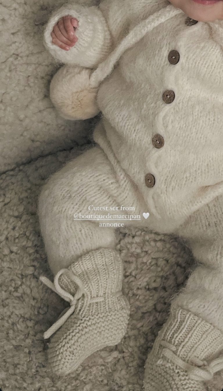 Alpaca Knit Baby Romper and Bonnet Set – Cream Outfit