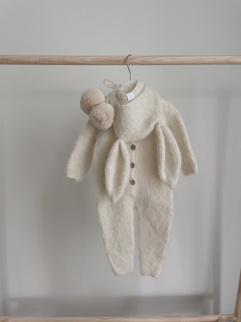 Alpaca Bunny Baby Set – Cream Romper and Bonnet