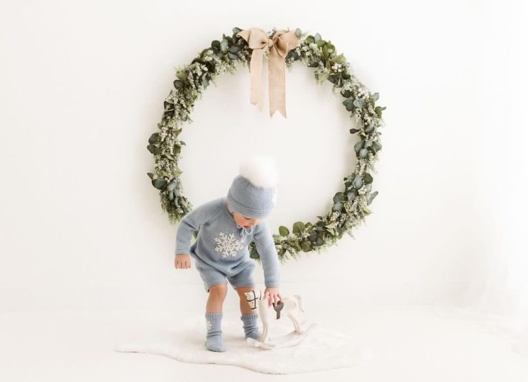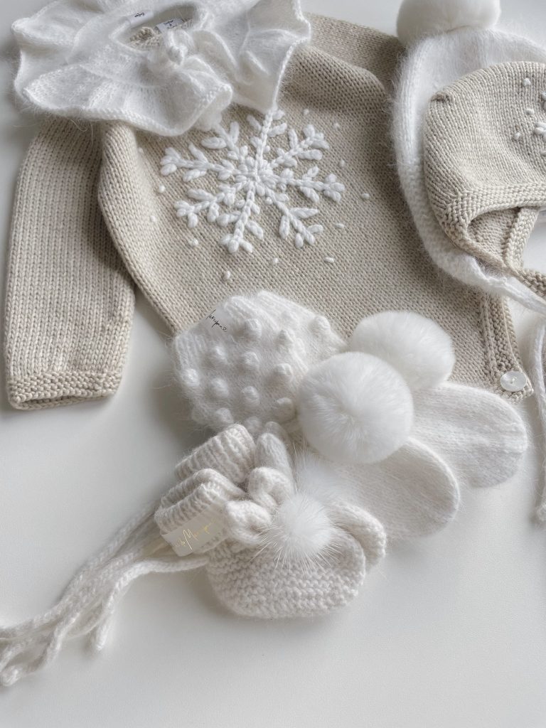 Long sleeve romper, bonnet and socks with snowflake embroidery – Set of 3 – Photo prop