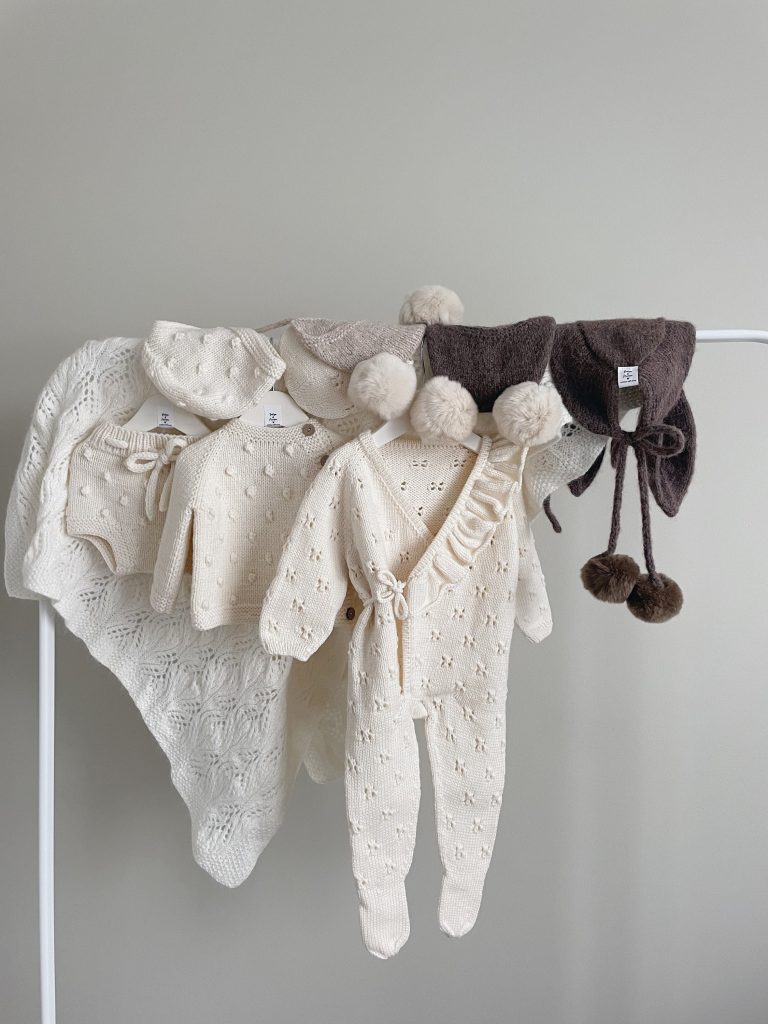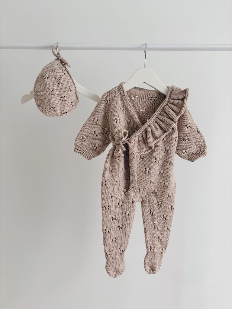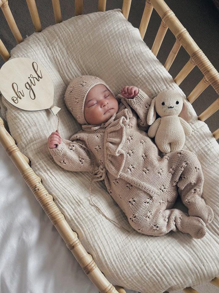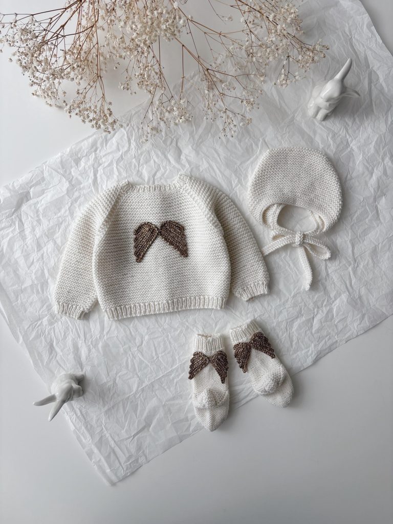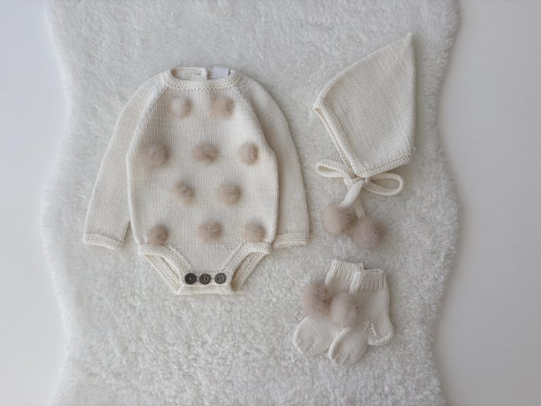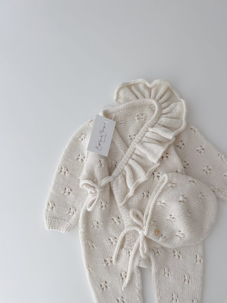 Merino Baby Angel Outfit – Knit Romper, Bonnet & Booties (Set of 4)