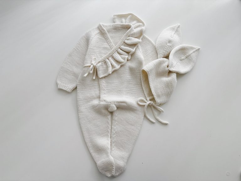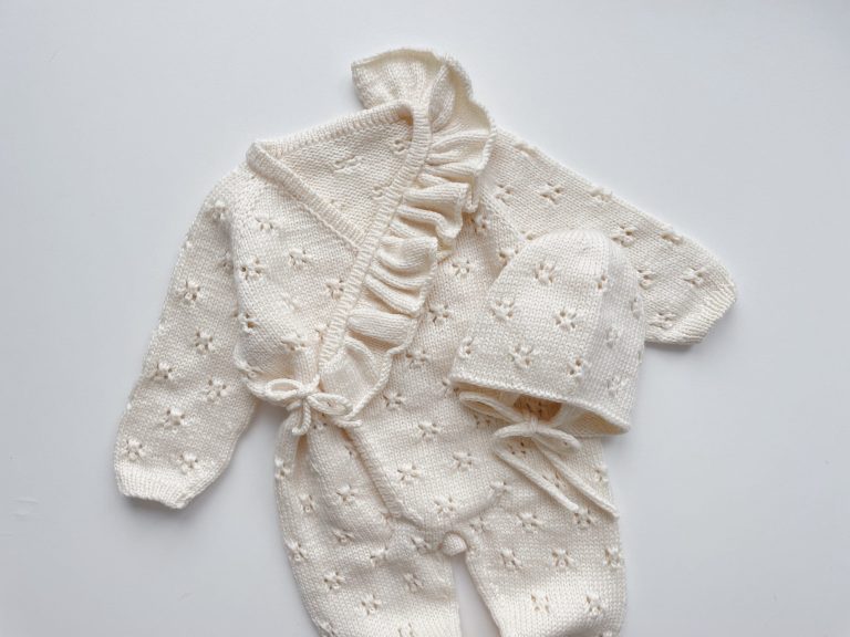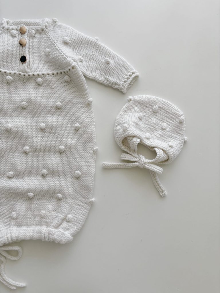 Merino Baby Romper and Bonnet Set – White Knit Photo Prop