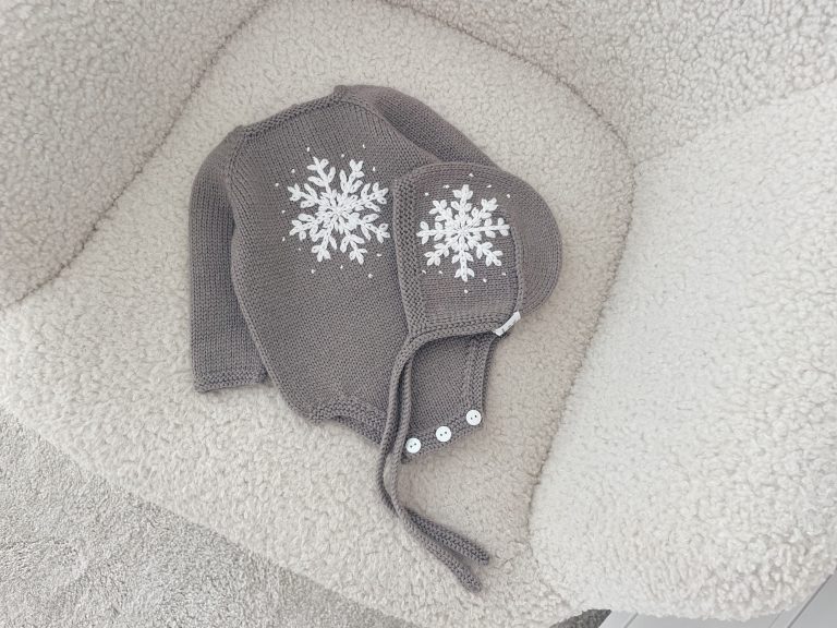 Merino Baby Romper and Bonnet Set – Red Snowflake Outfit