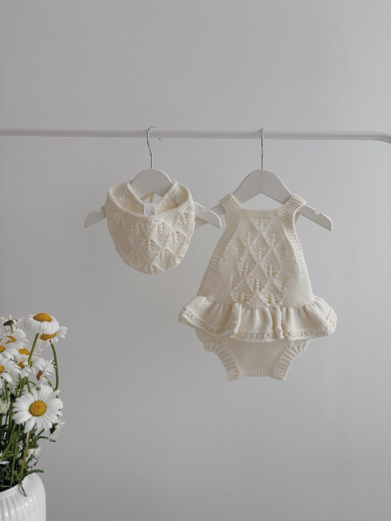Merino Baby Romper and Bonnet Set – Knit Sleeveless Outfit