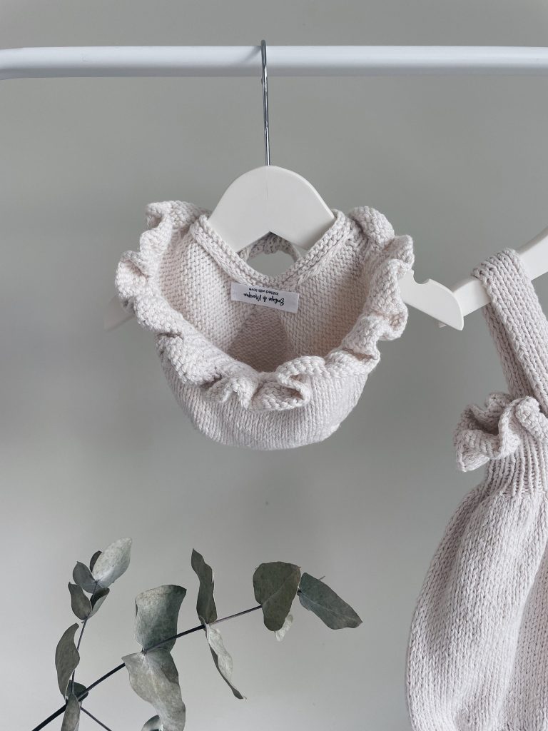 Merino Wool Baby Sweater and Bonnet Set – Cream Ruffle Neck