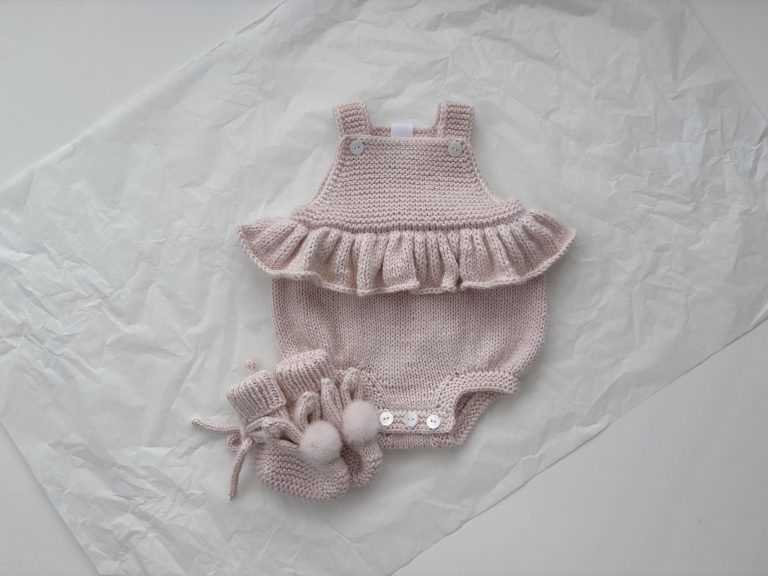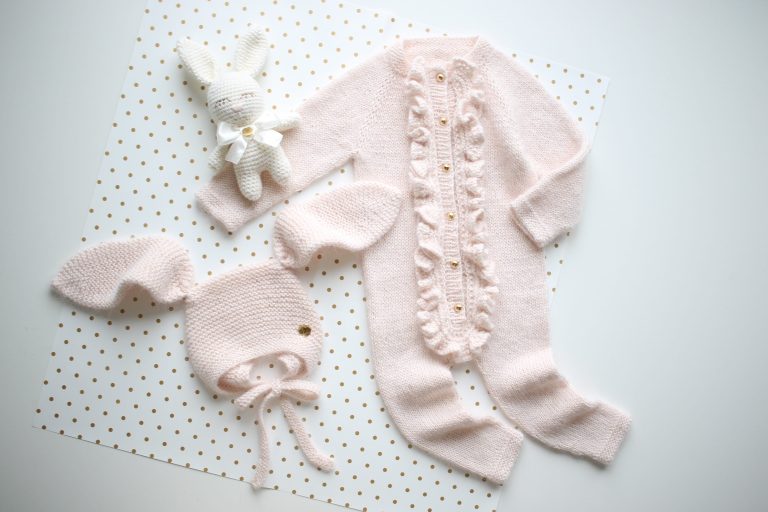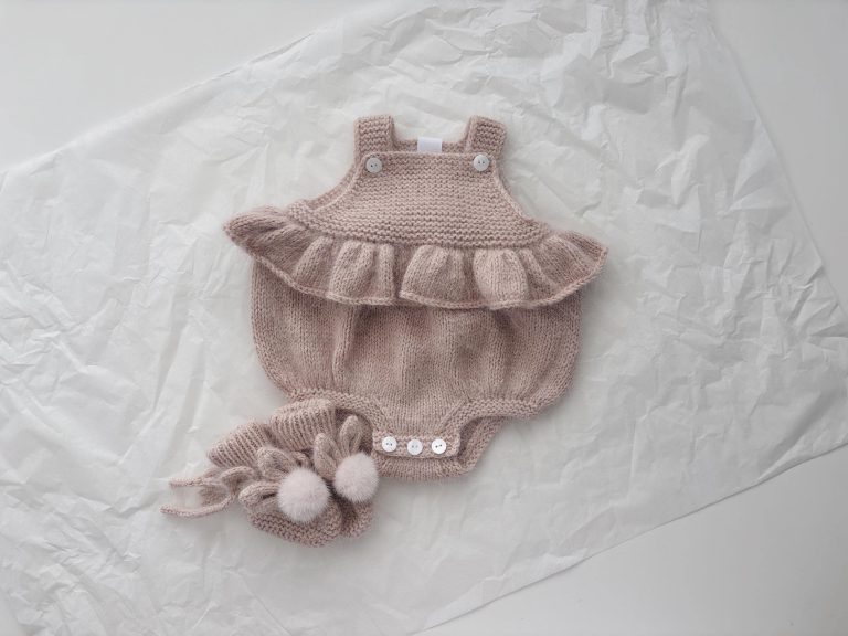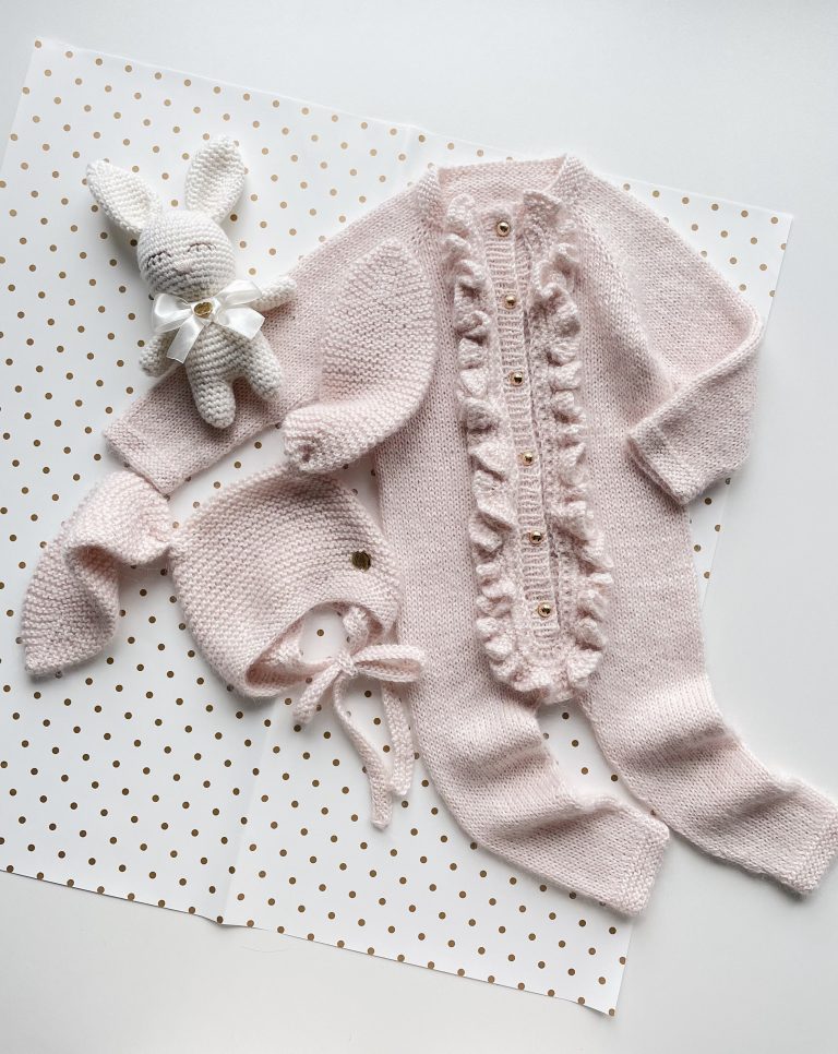 Pale Pink Baby Romper and Bunny Bonnet Set – Merino Mohair Blend