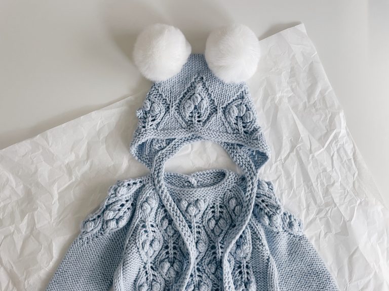 Pale Blue Merino Baby Sweater and Bonnet Set – Fur Pom Poms