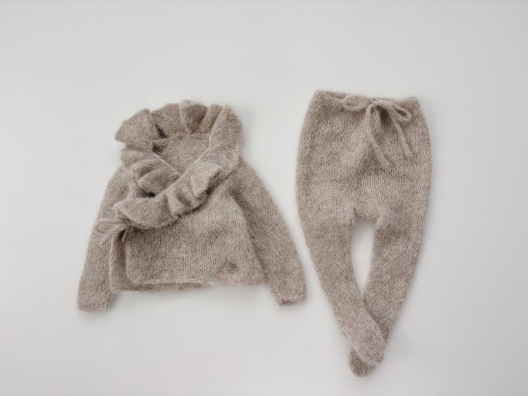 Alpaca Silk Baby Cardigan Set – Stone Popcorn Knit