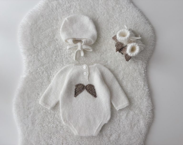 Angora Baby Boy Angel Outfit – Romper, Bonnet & Booties