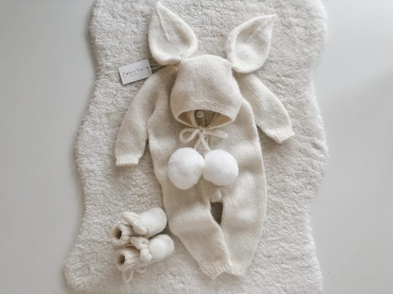 Alpaca Knit Bunny Romper Set – Baby Bonnet & Booties