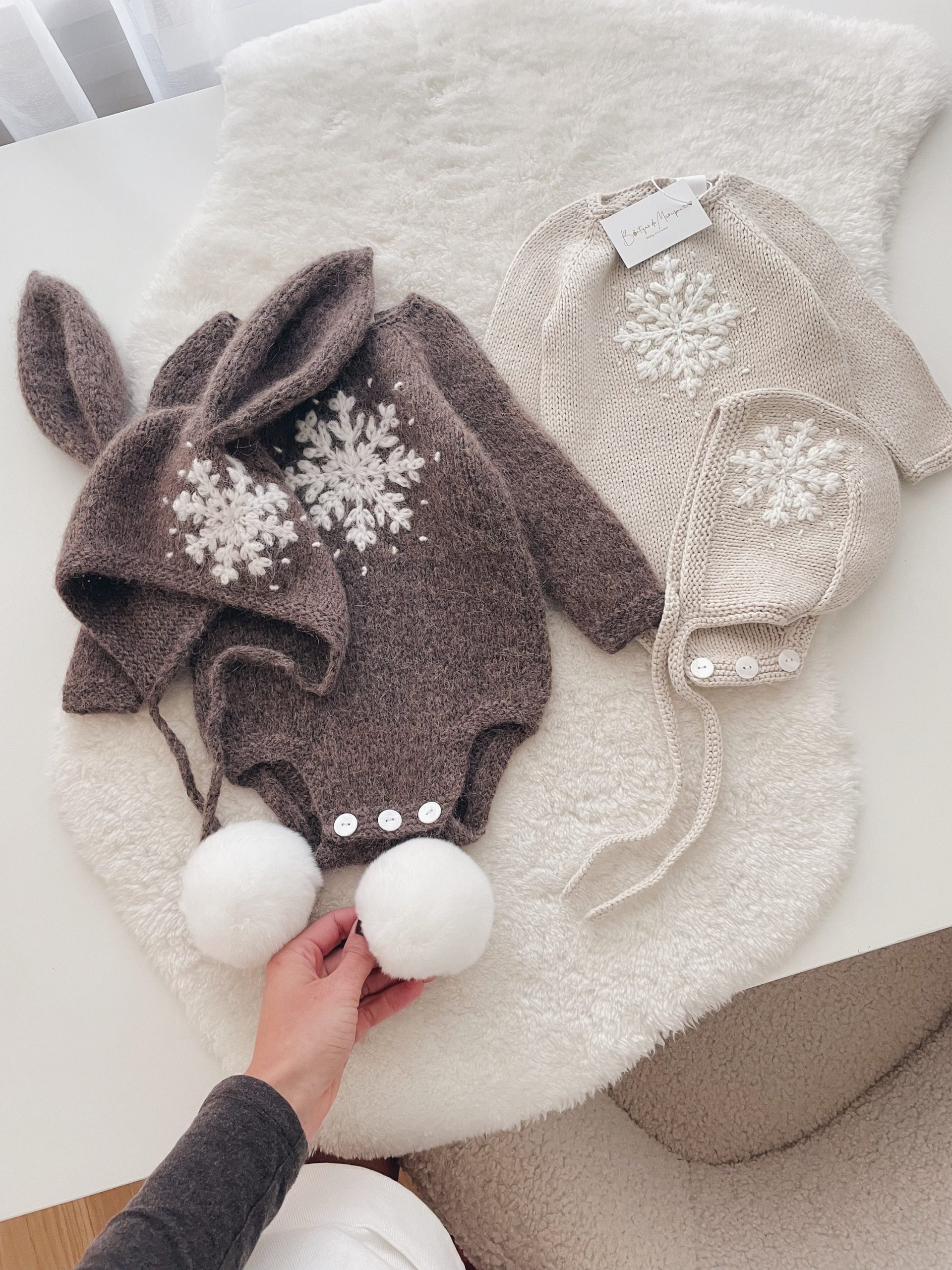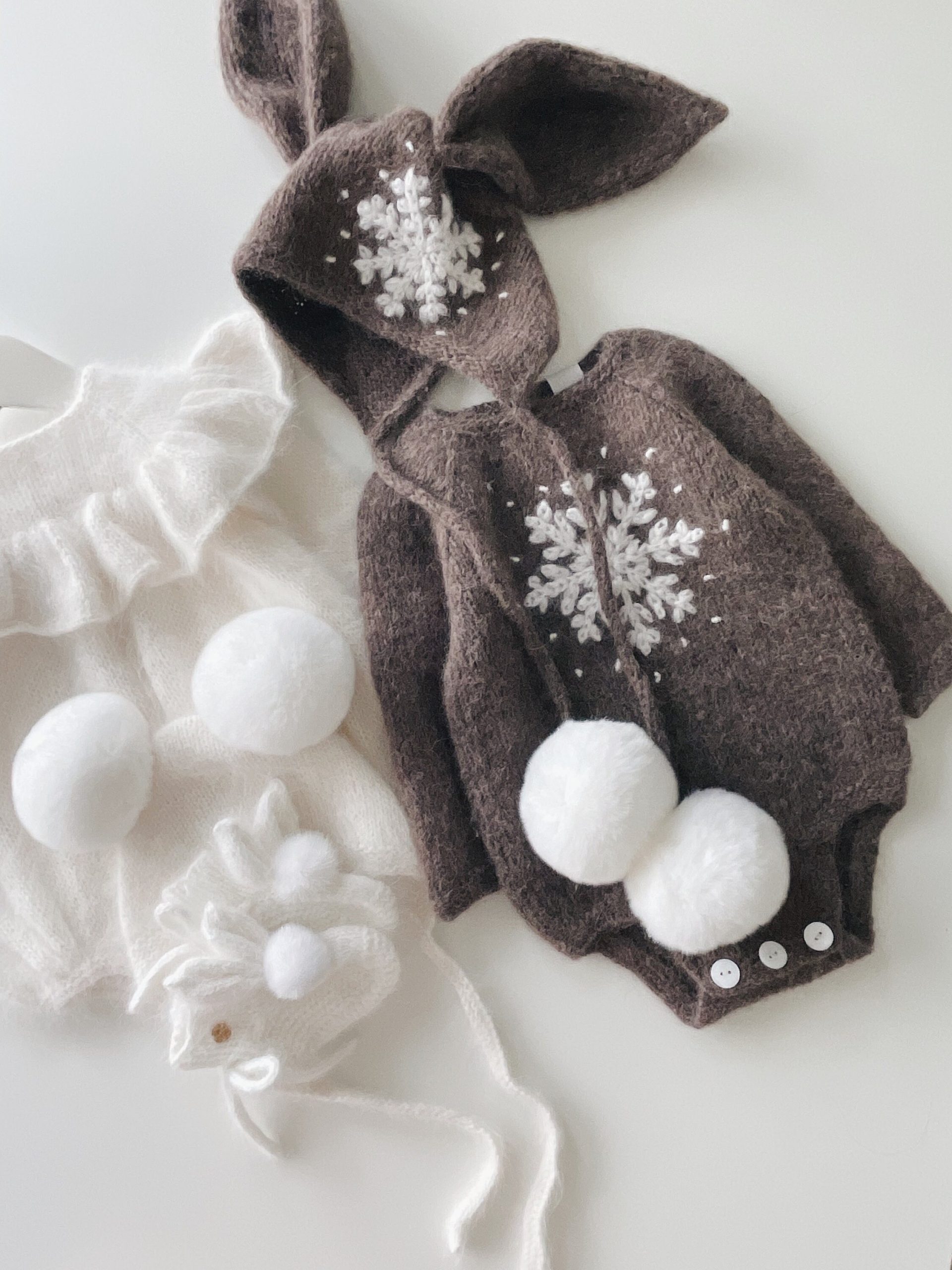 Alpaca Blend Bunny Romper Set – Genuine Rabbit Fur Bonnet