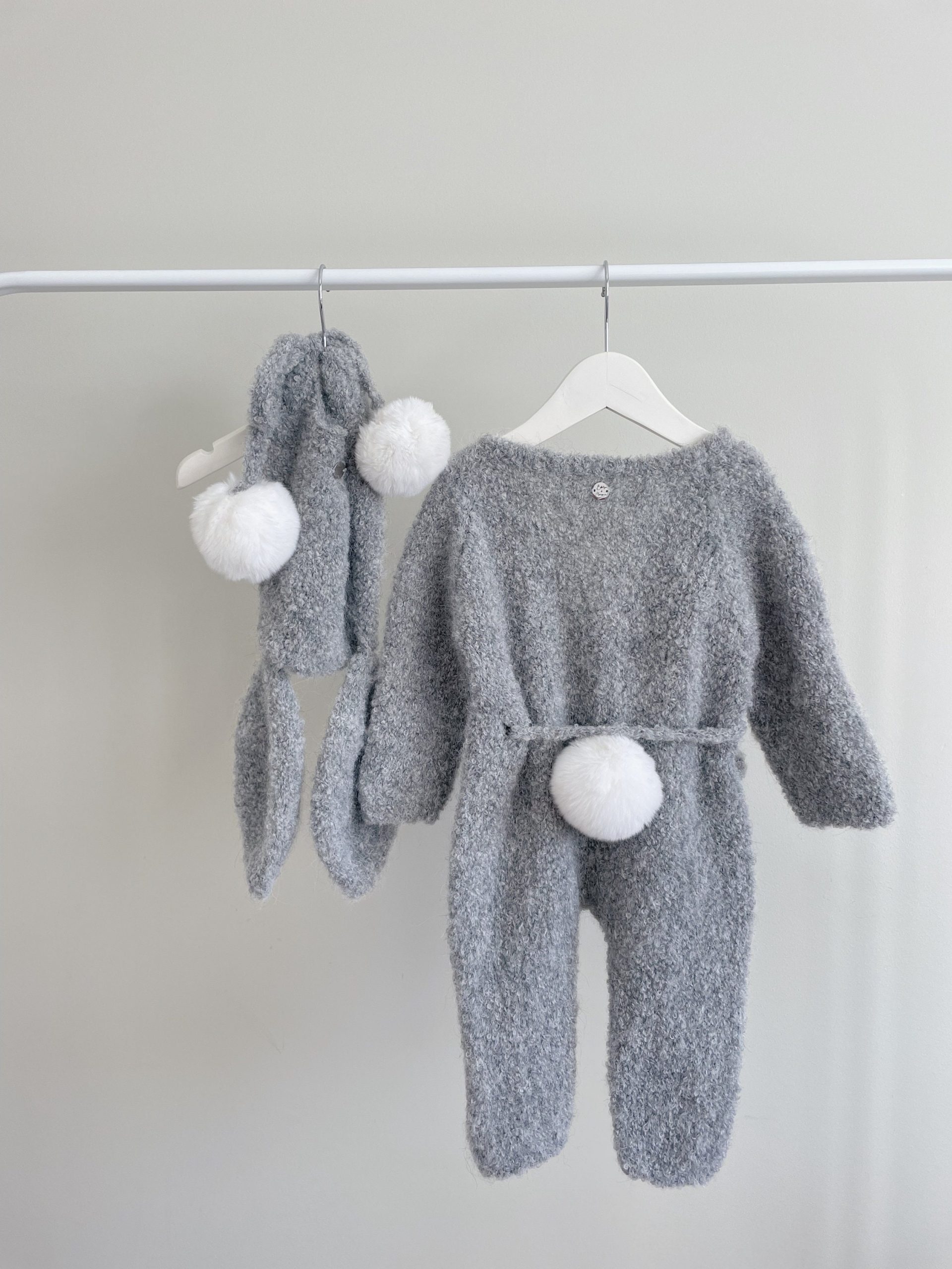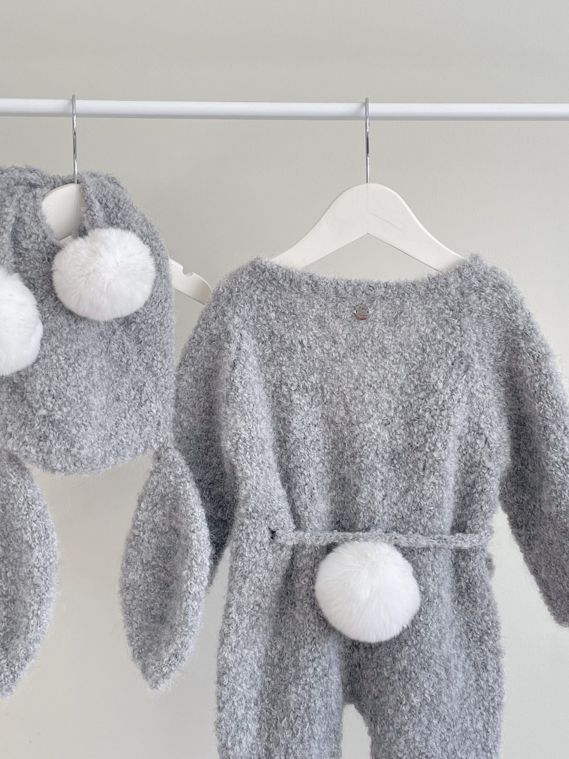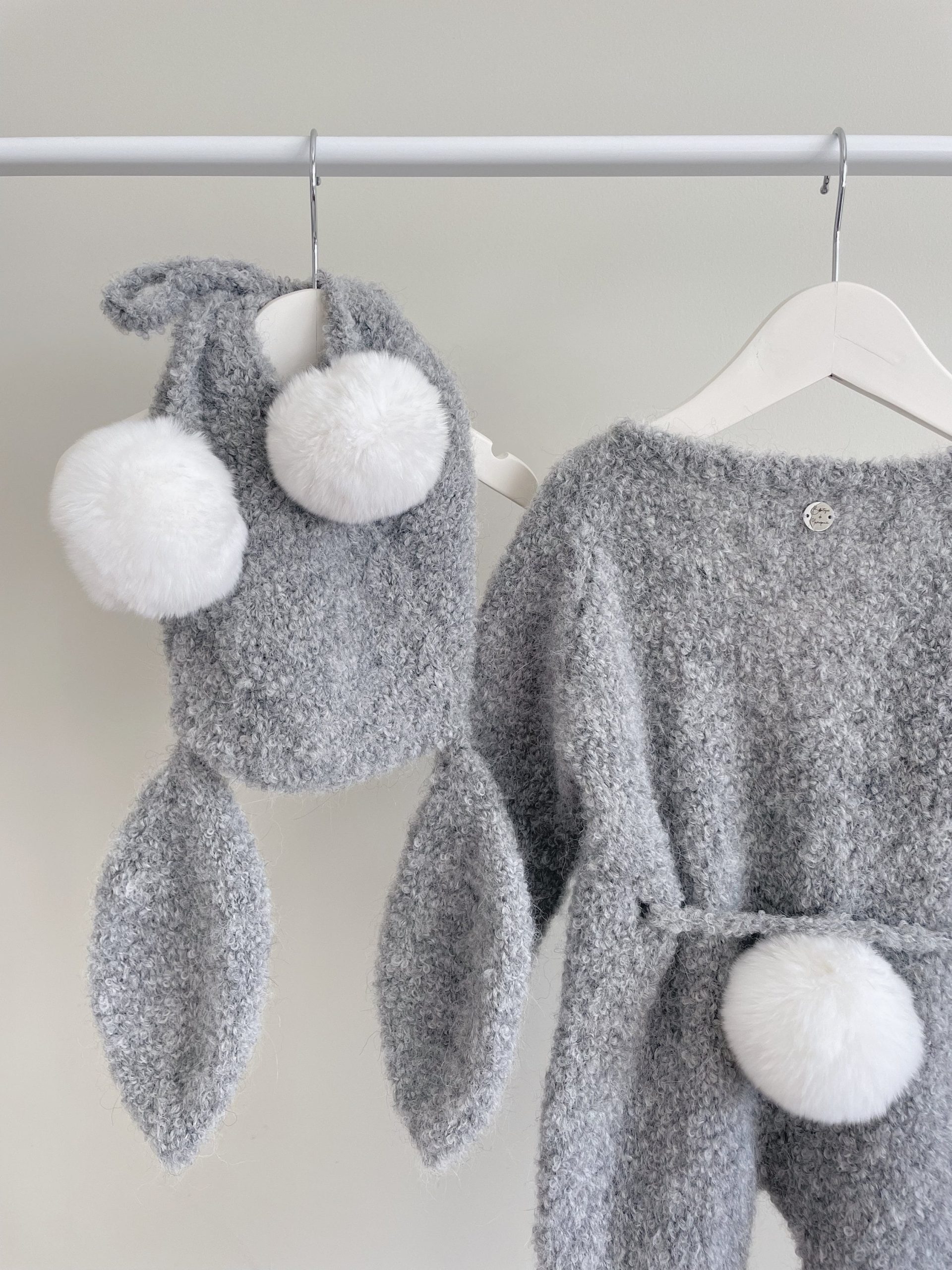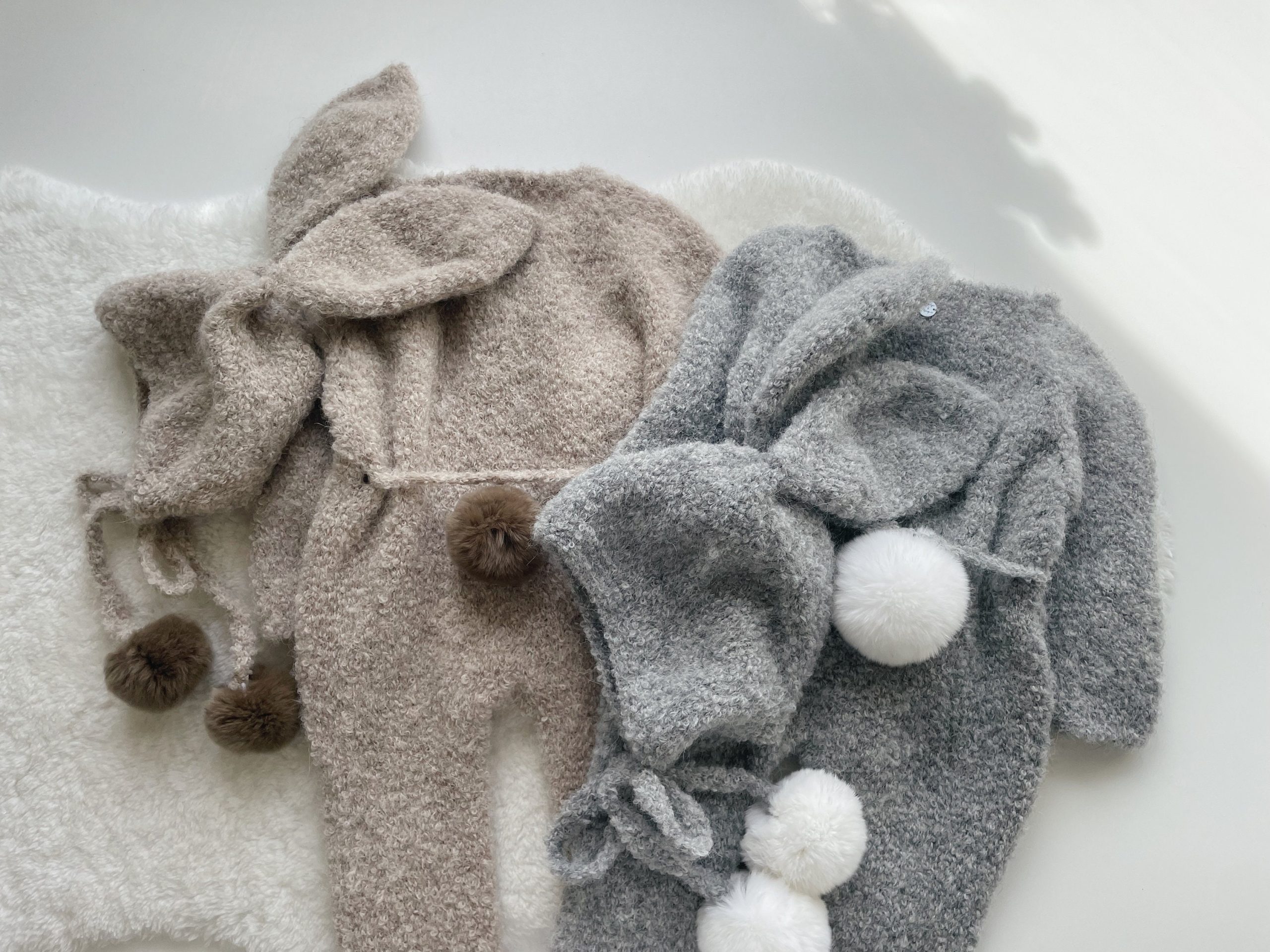Alpaca Knit Baby Bunny Outfit – Romper and Bonnet Set