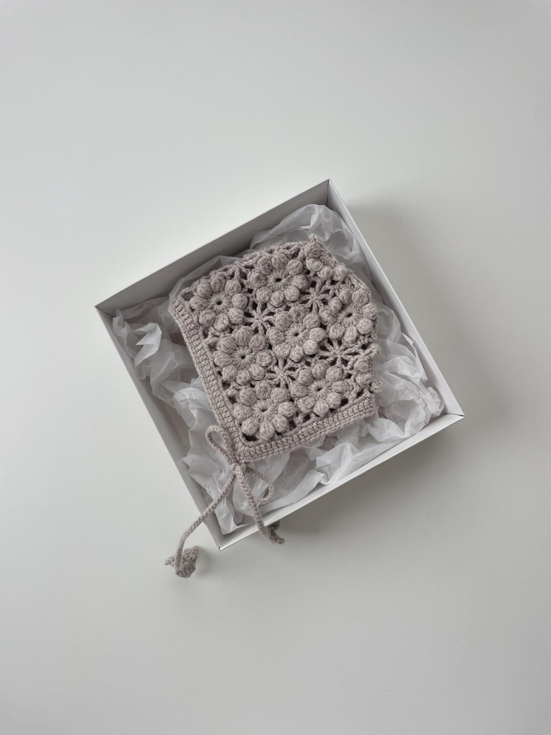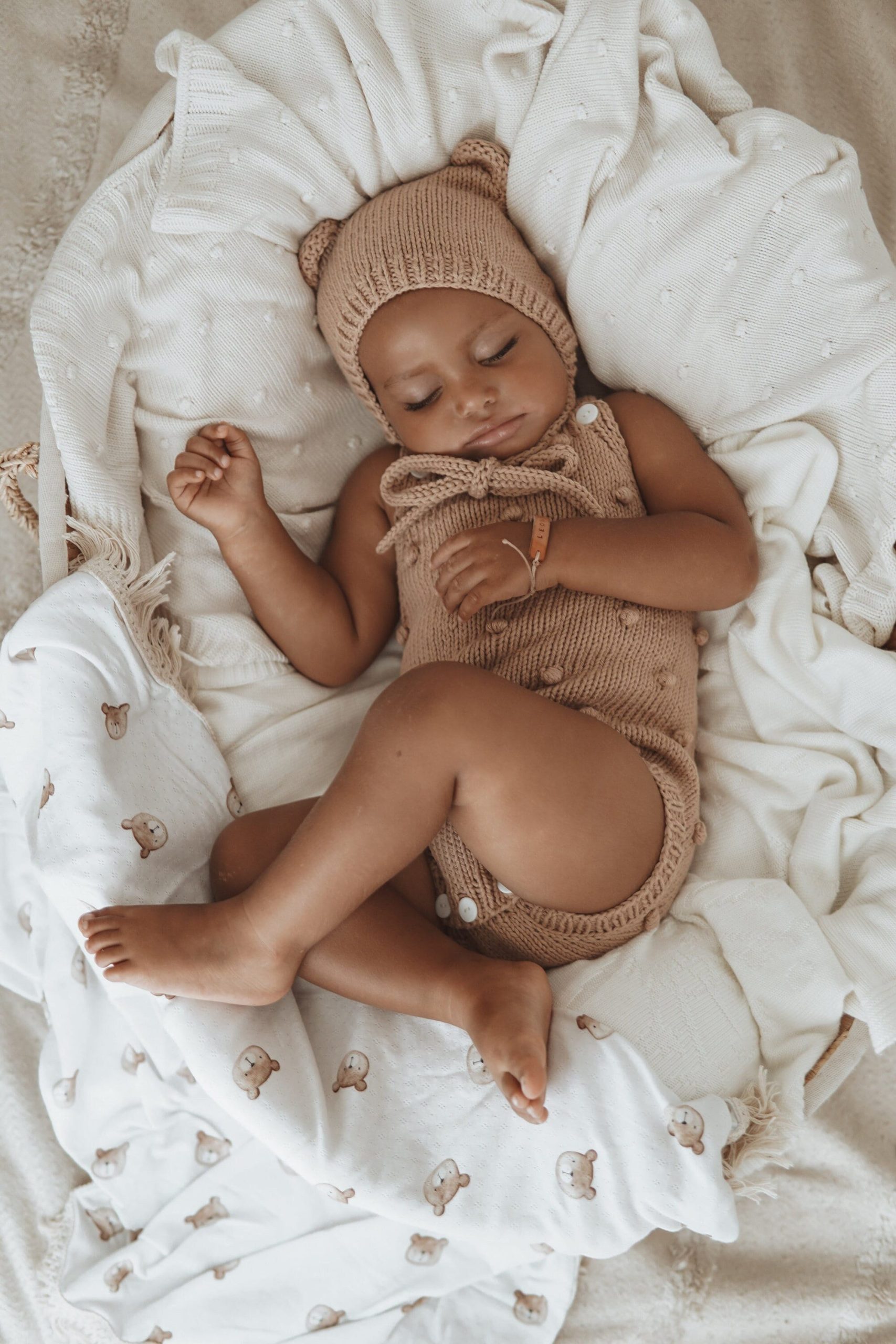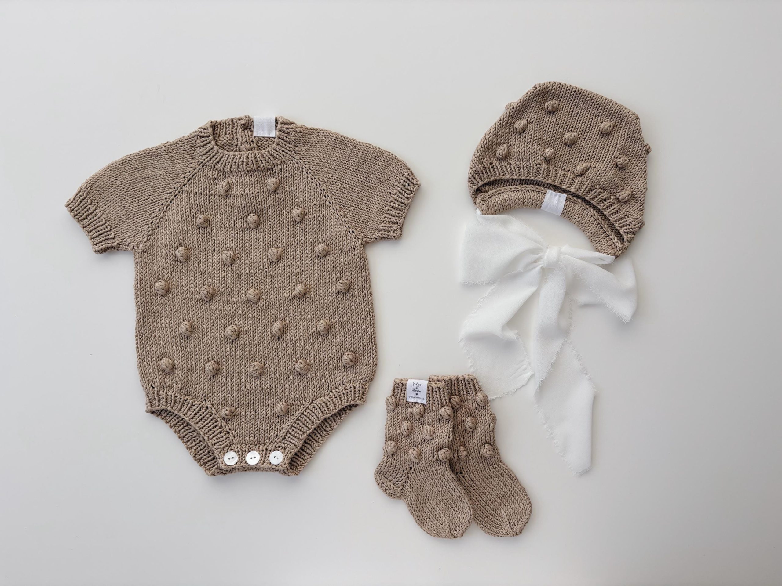 Cotton Popcorn Knit Baby Outfit – Romper & Bonnet Set