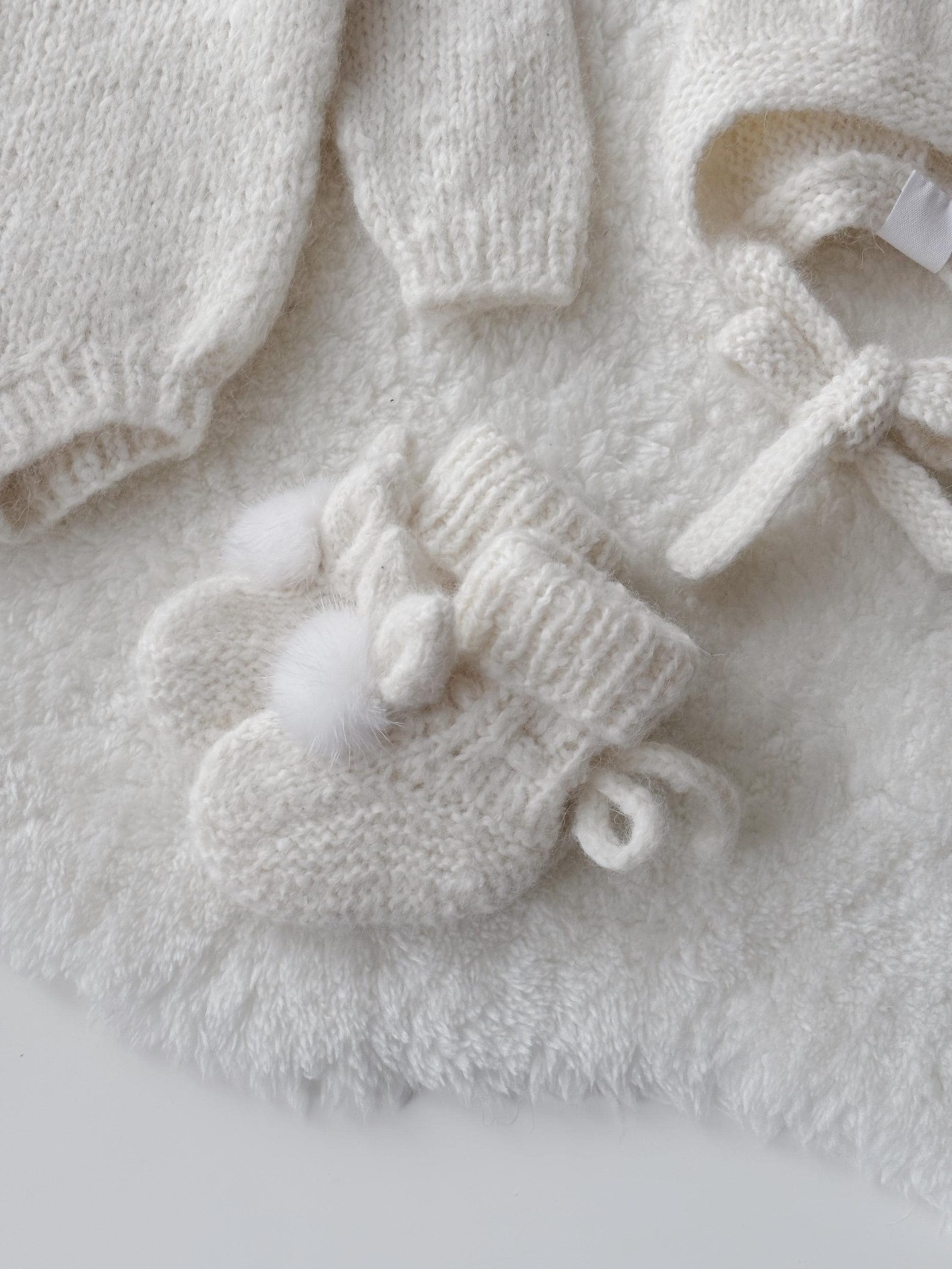 Knit Baby Alpaca Romper, Bonnet & Socks – Cream Newborn Set