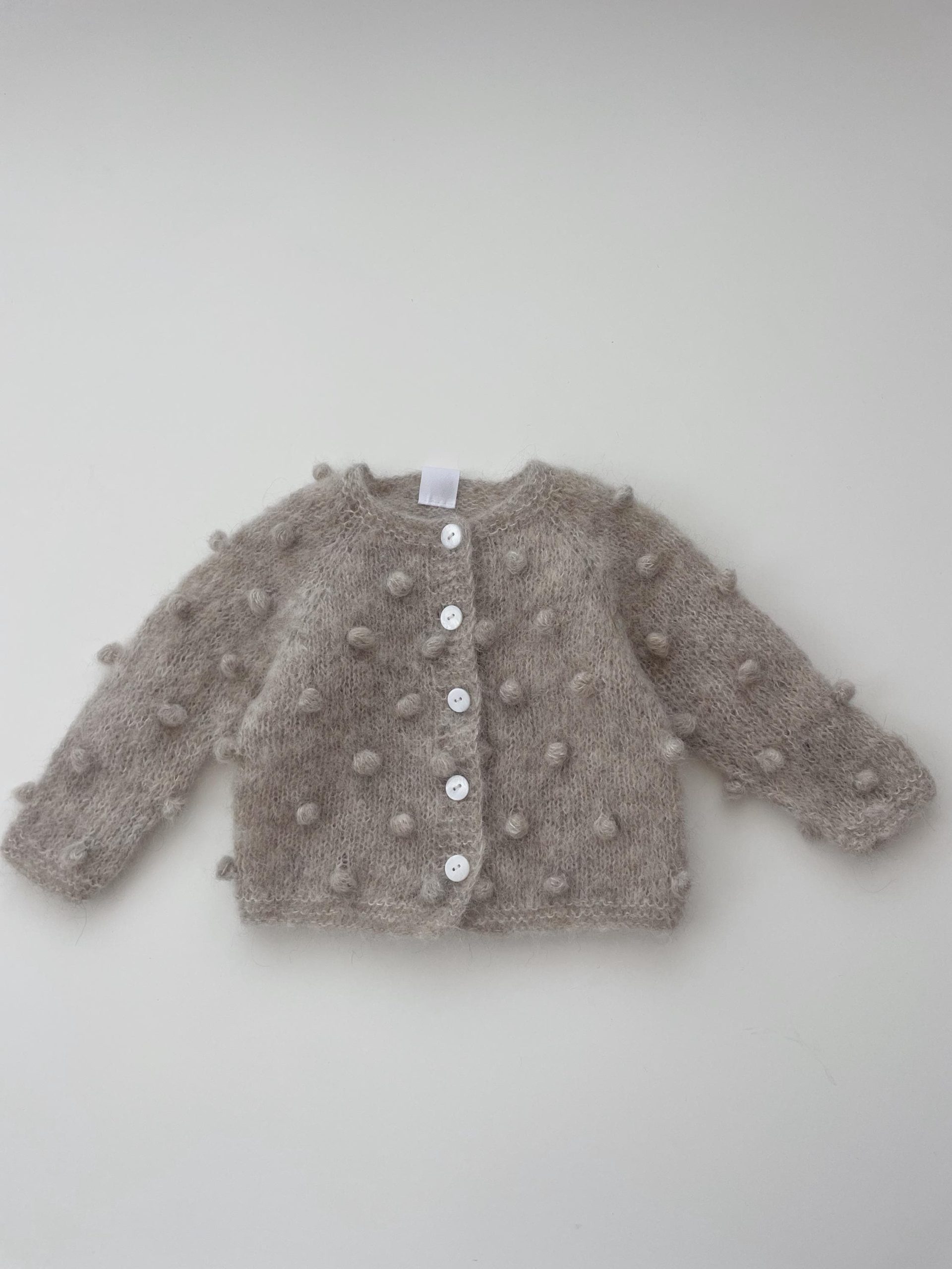 I have knitted this popcorn cardigan and pantries from wonderfully stone colour alpaca silk yarn. This listing is for cute popcorn cardigan with white shell buttons. This is a must have for your prop collection.