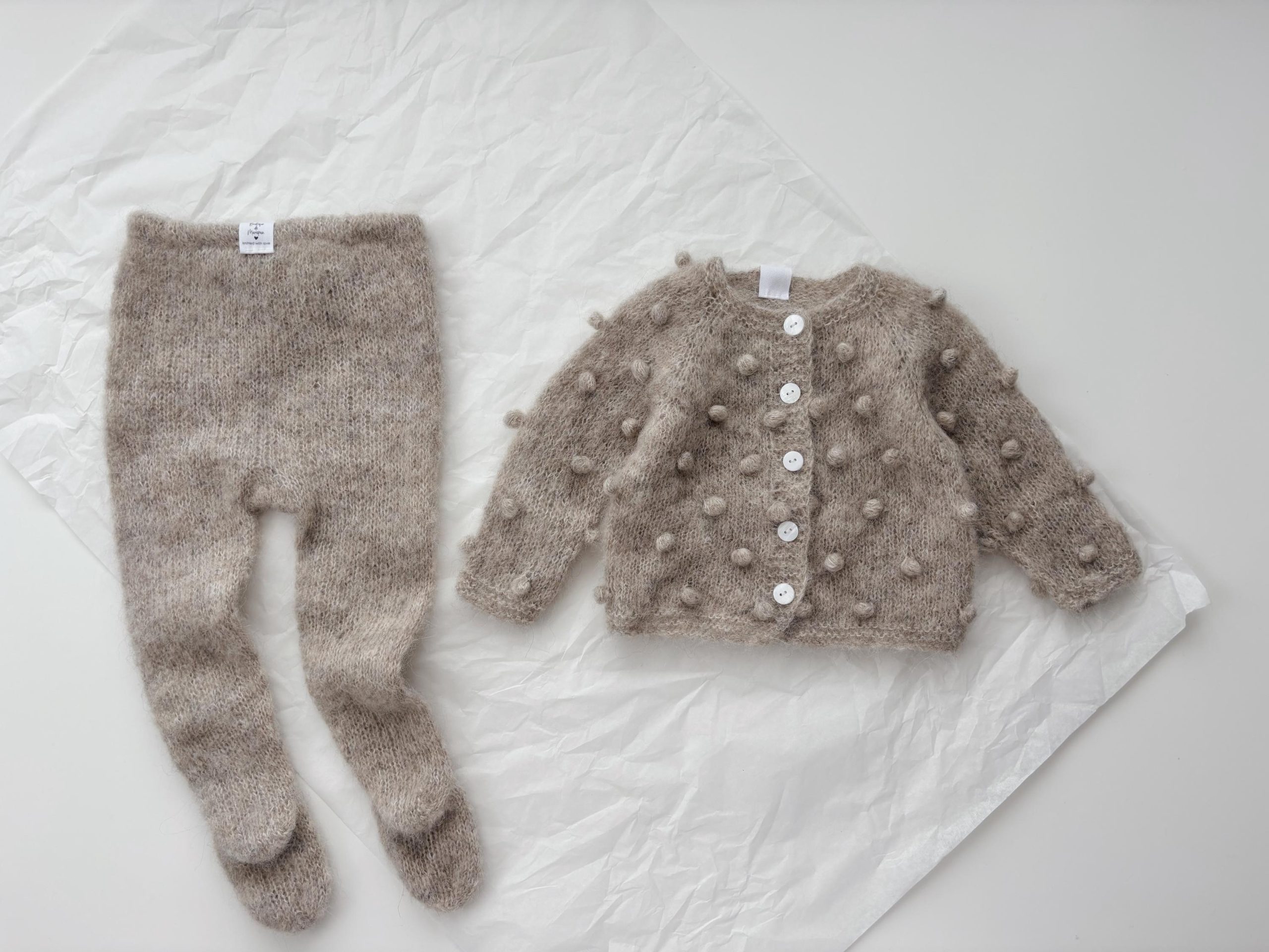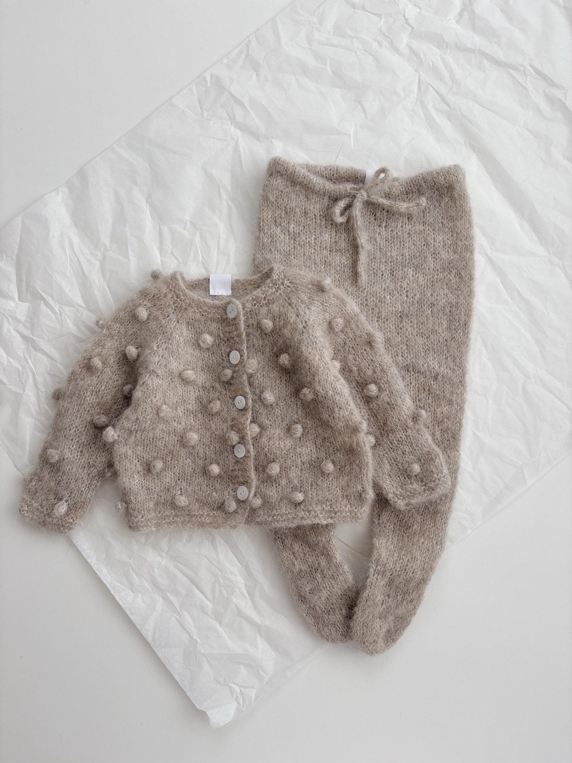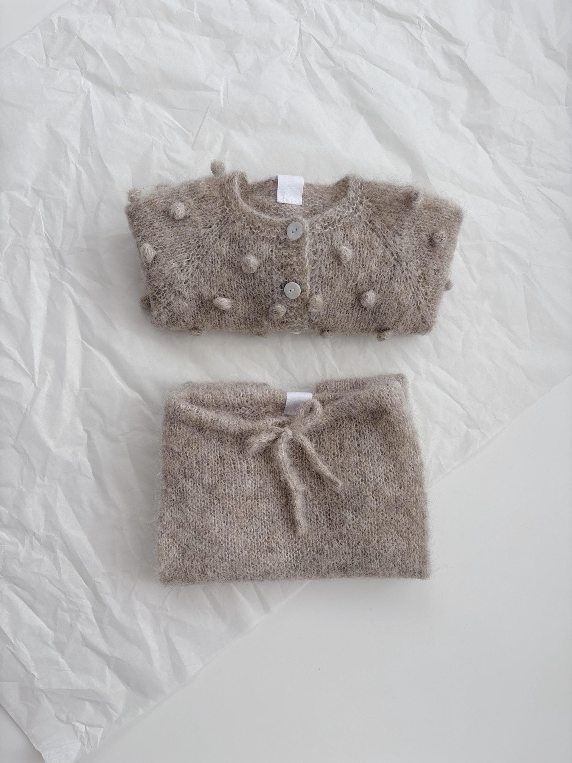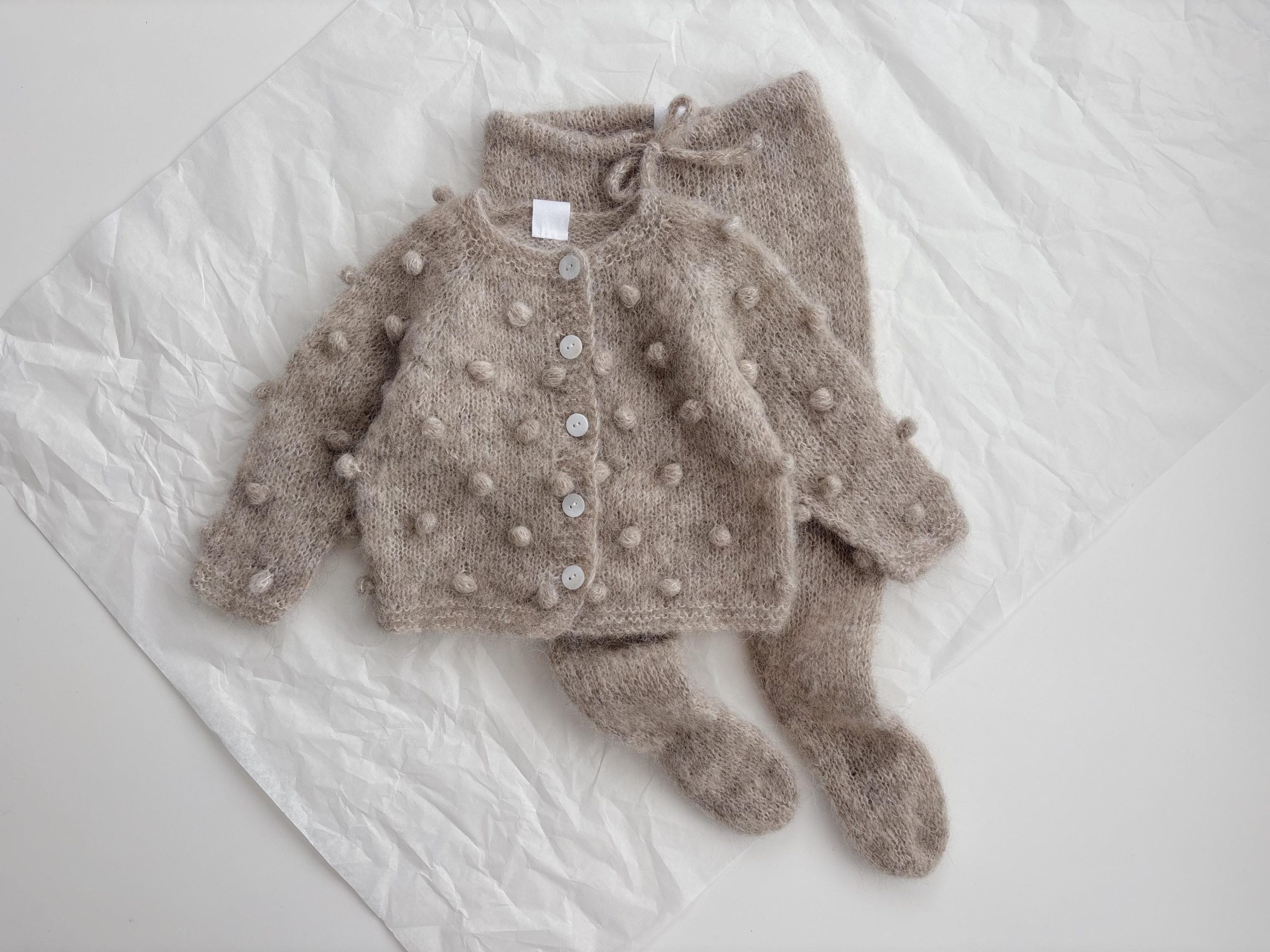 Alpaca Silk Baby Cardigan Set – Stone Popcorn Knit