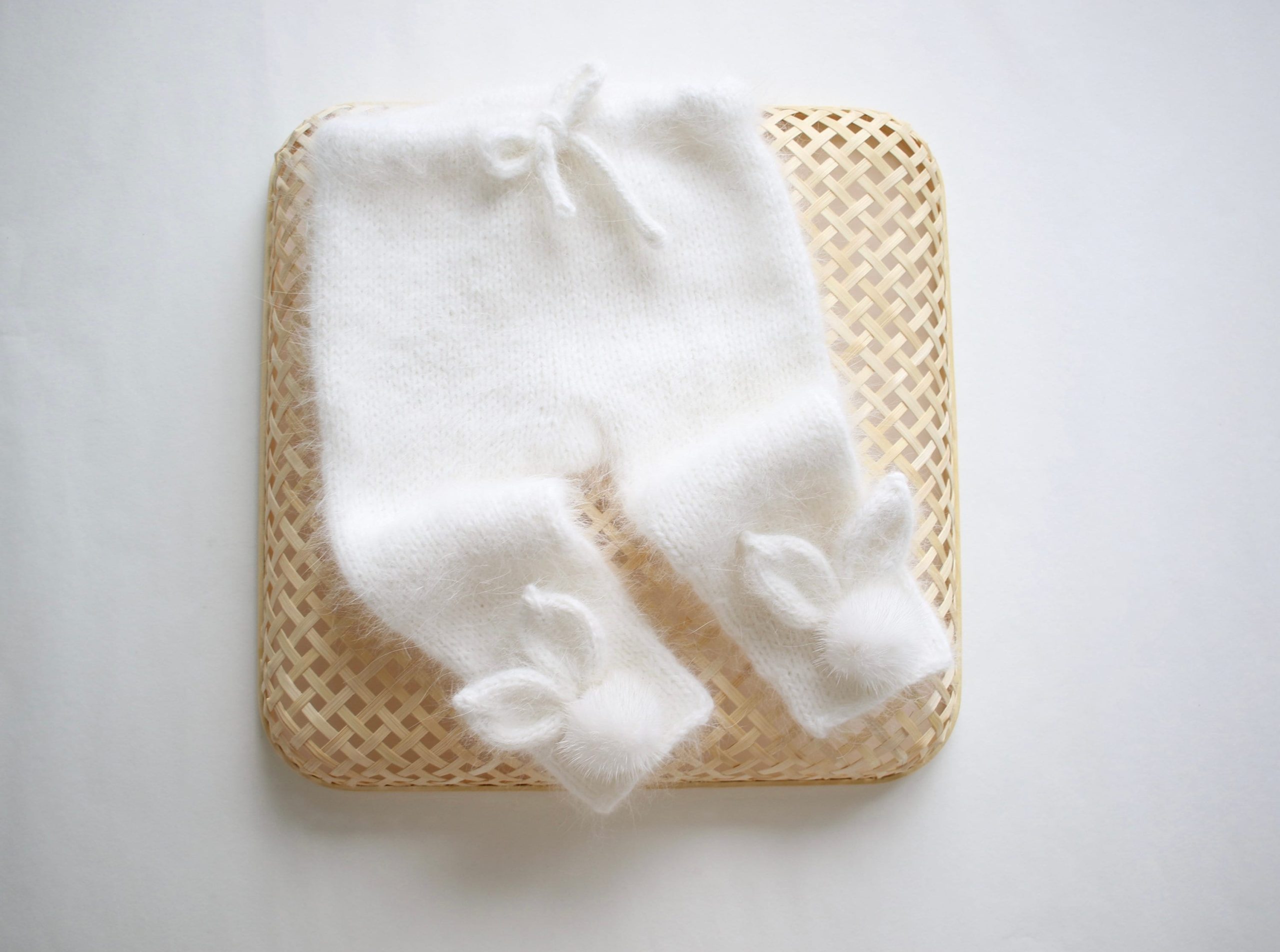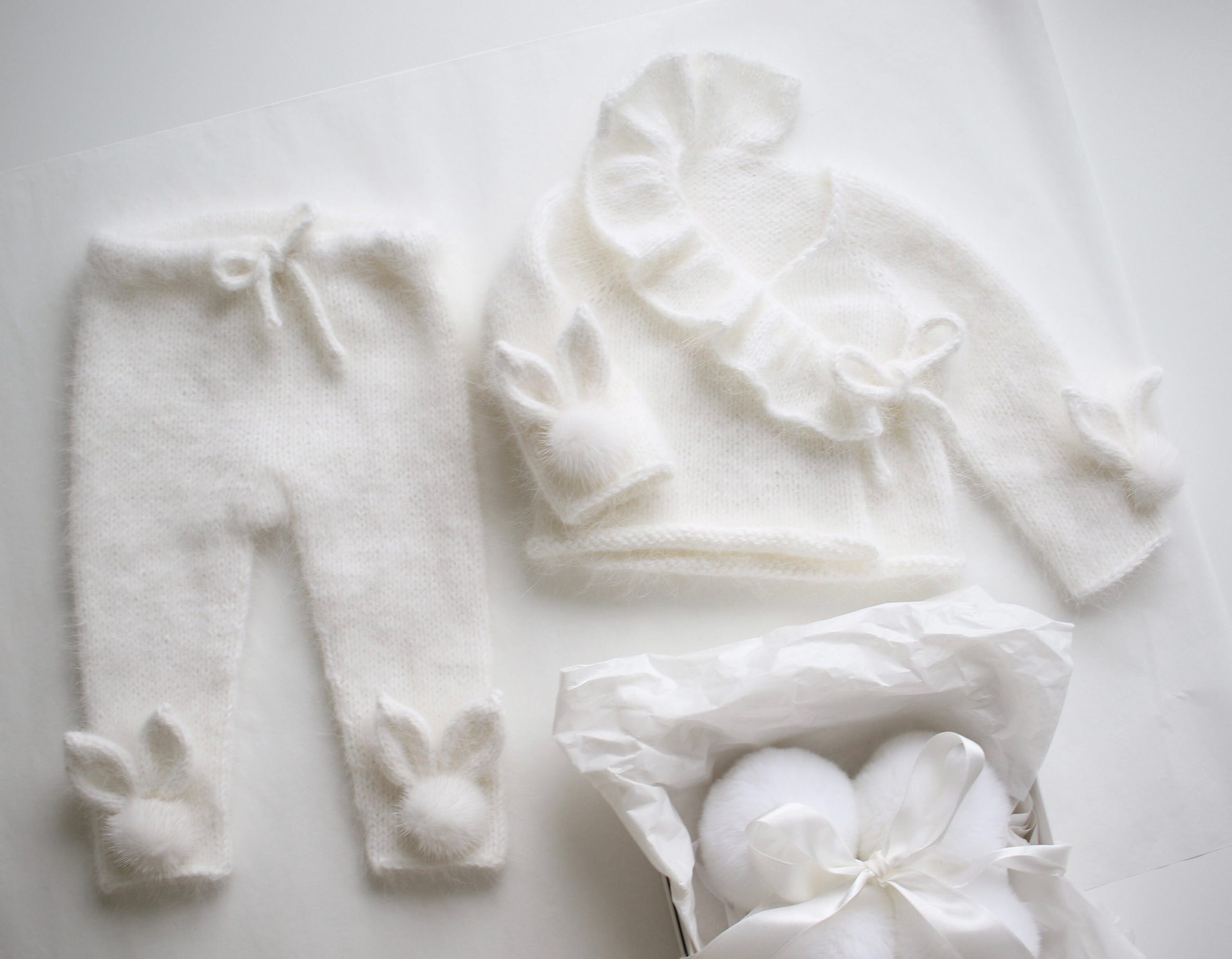 Angora Baby Bunny Set – Ruffle Sweater & Pants, Milky White