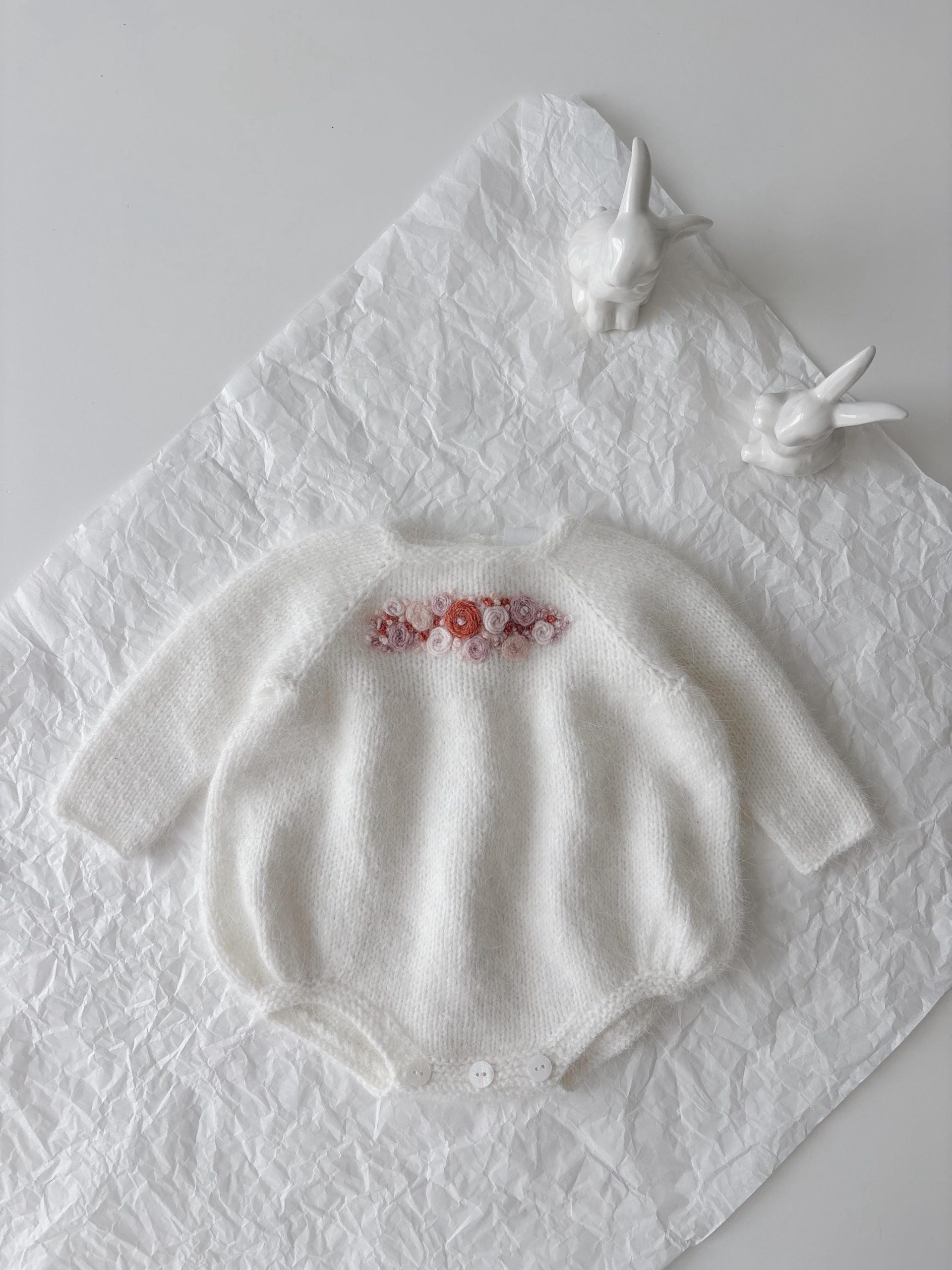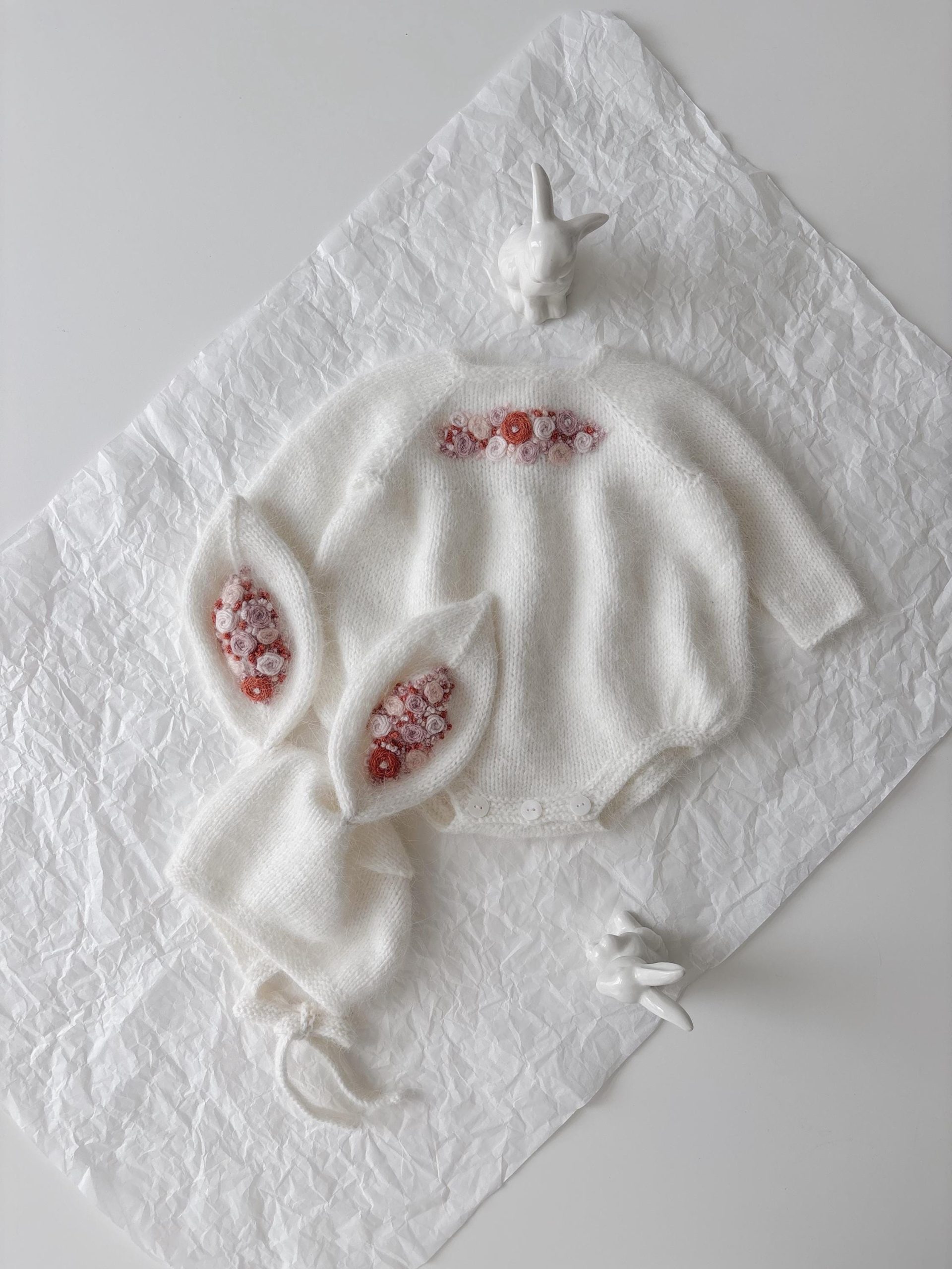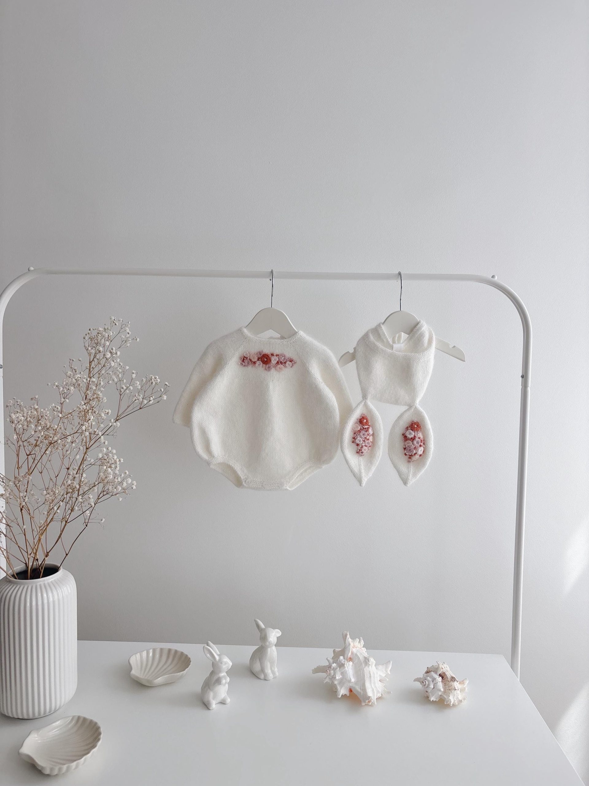 Embroidered Merino Baby Romper and Bonnet Set – Knitted Photo Prop