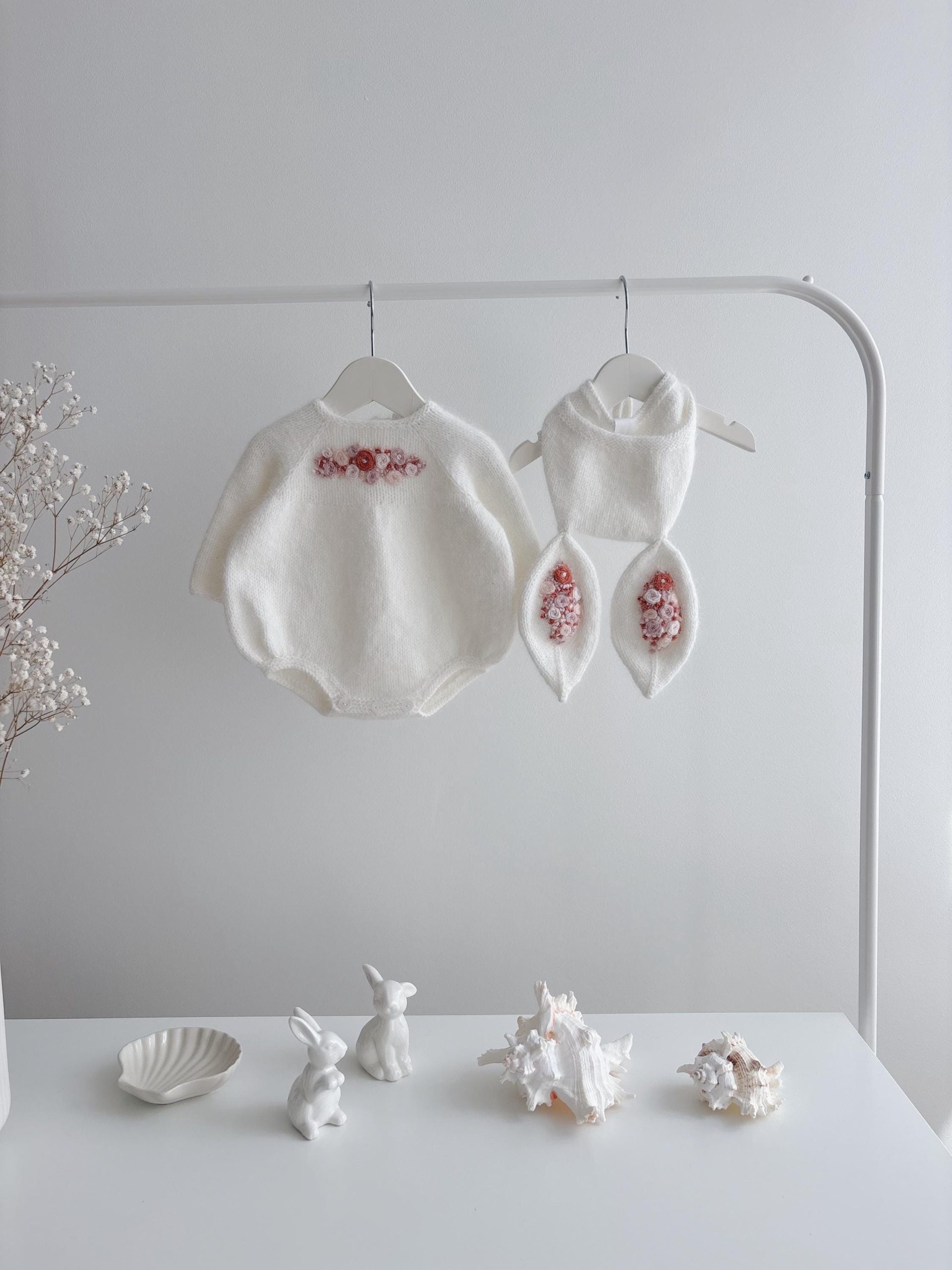Angora Baby Romper and Bunny Bonnet Set – Embroidered Photo Props