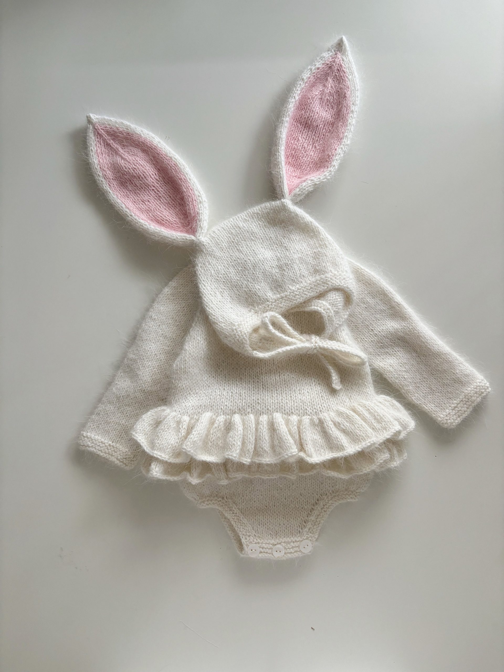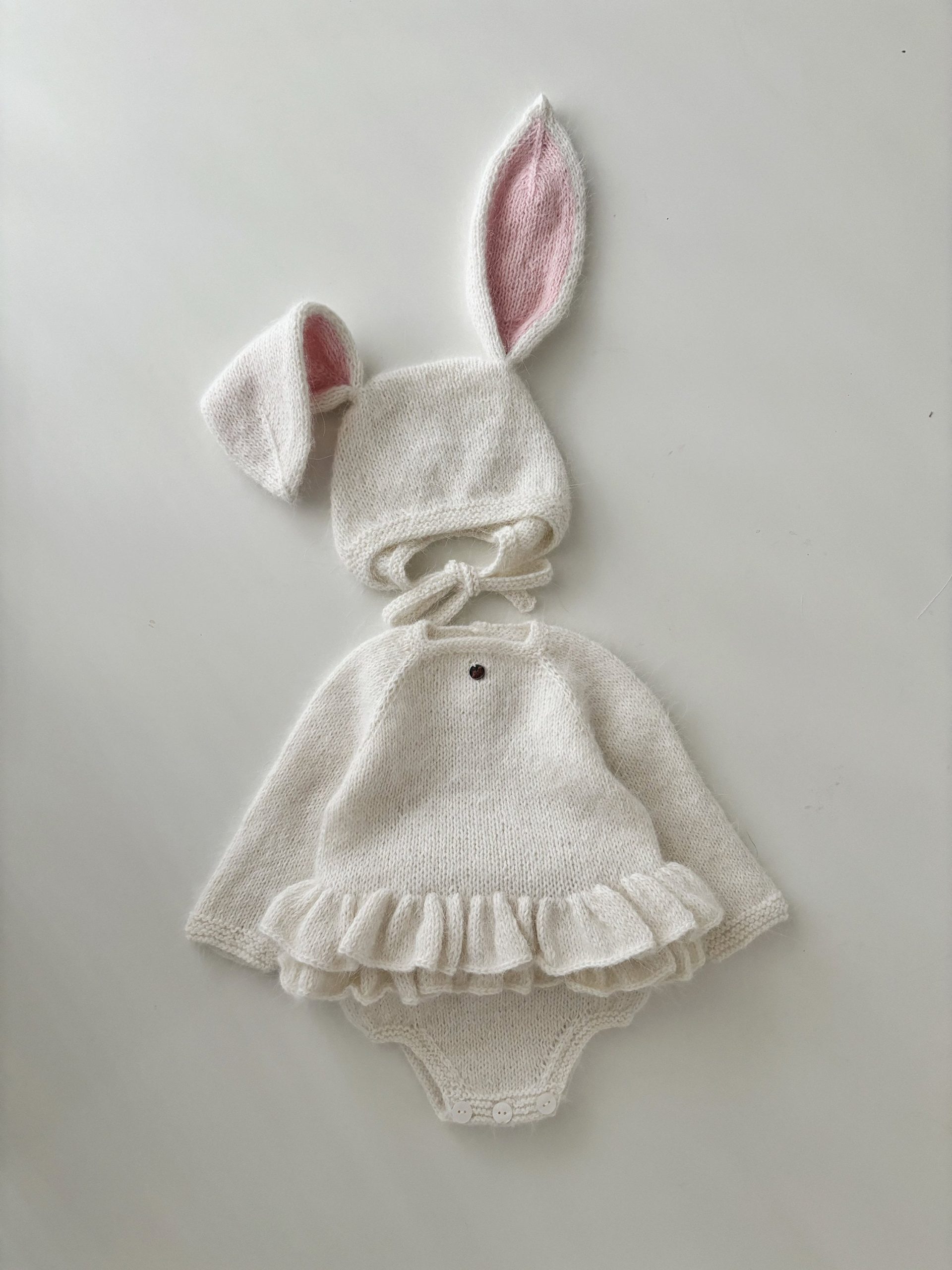 Alpaca Knit Baby Bunny Outfit – Romper and Bonnet Set
