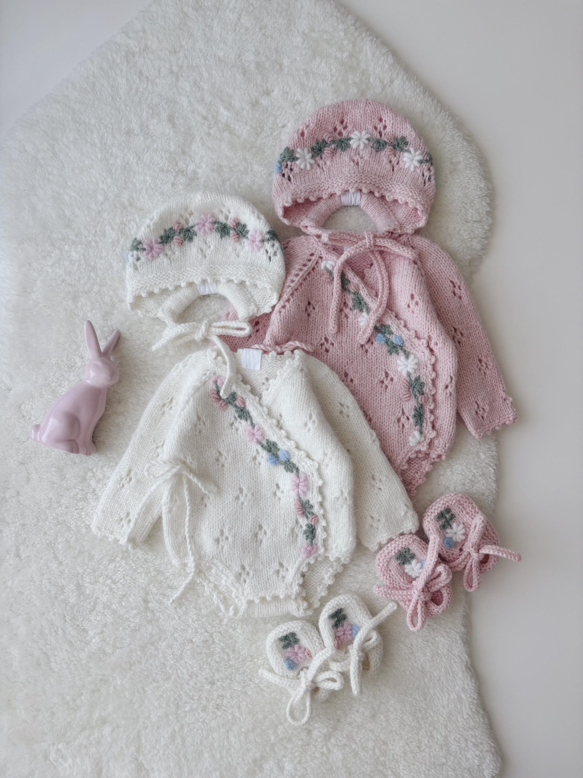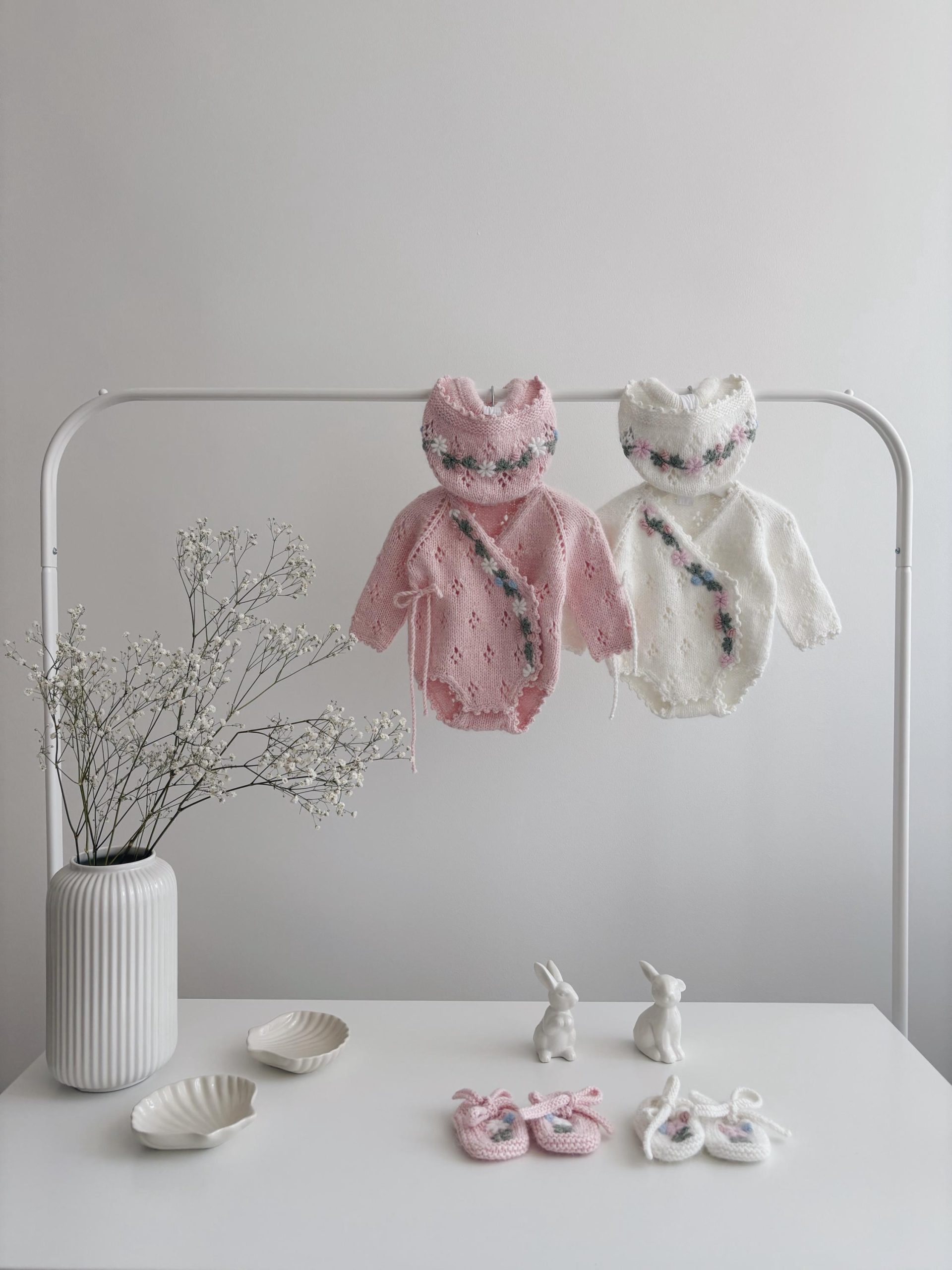 Merino Baby Romper Set – Cream Knit Bonnet & Booties