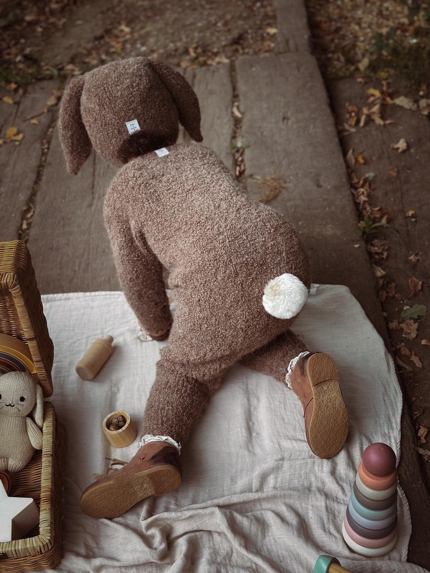 Baby Alpaca Knit Bunny Set – Romper & Bonnet, Genuine Fur Pom