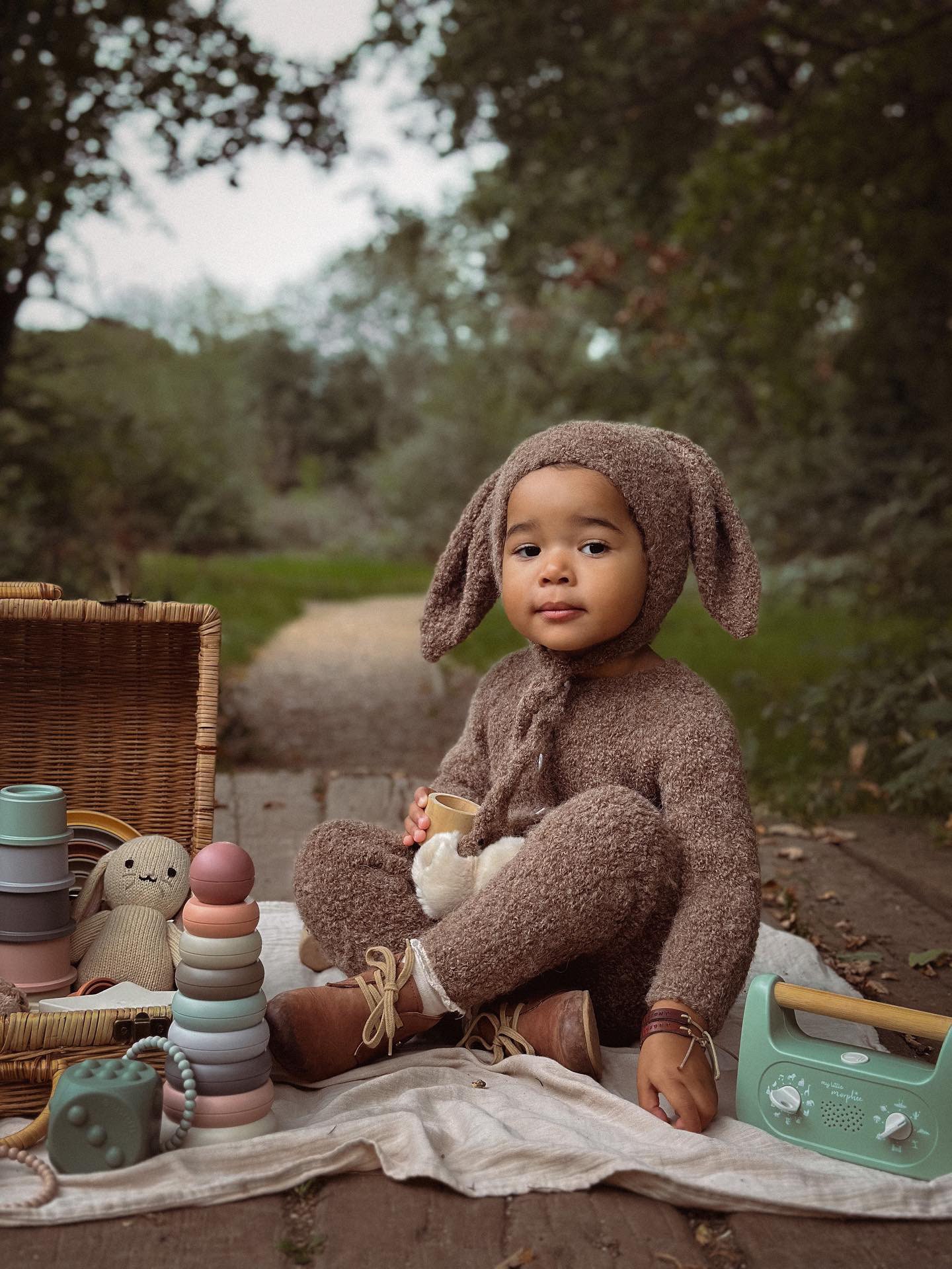 Alpaca Knit Baby Bunny Outfit – Romper and Bonnet Set
