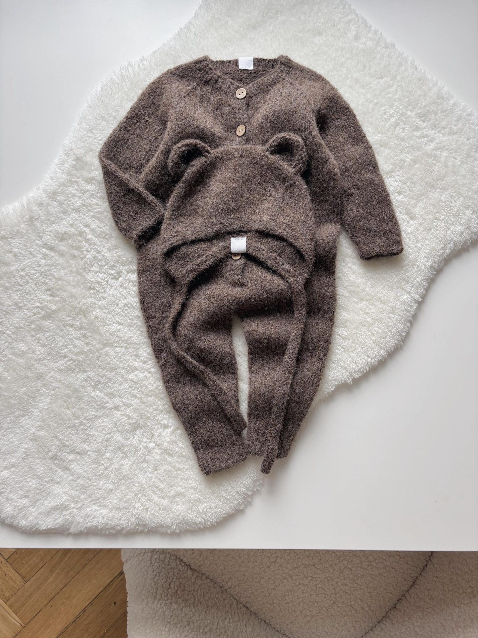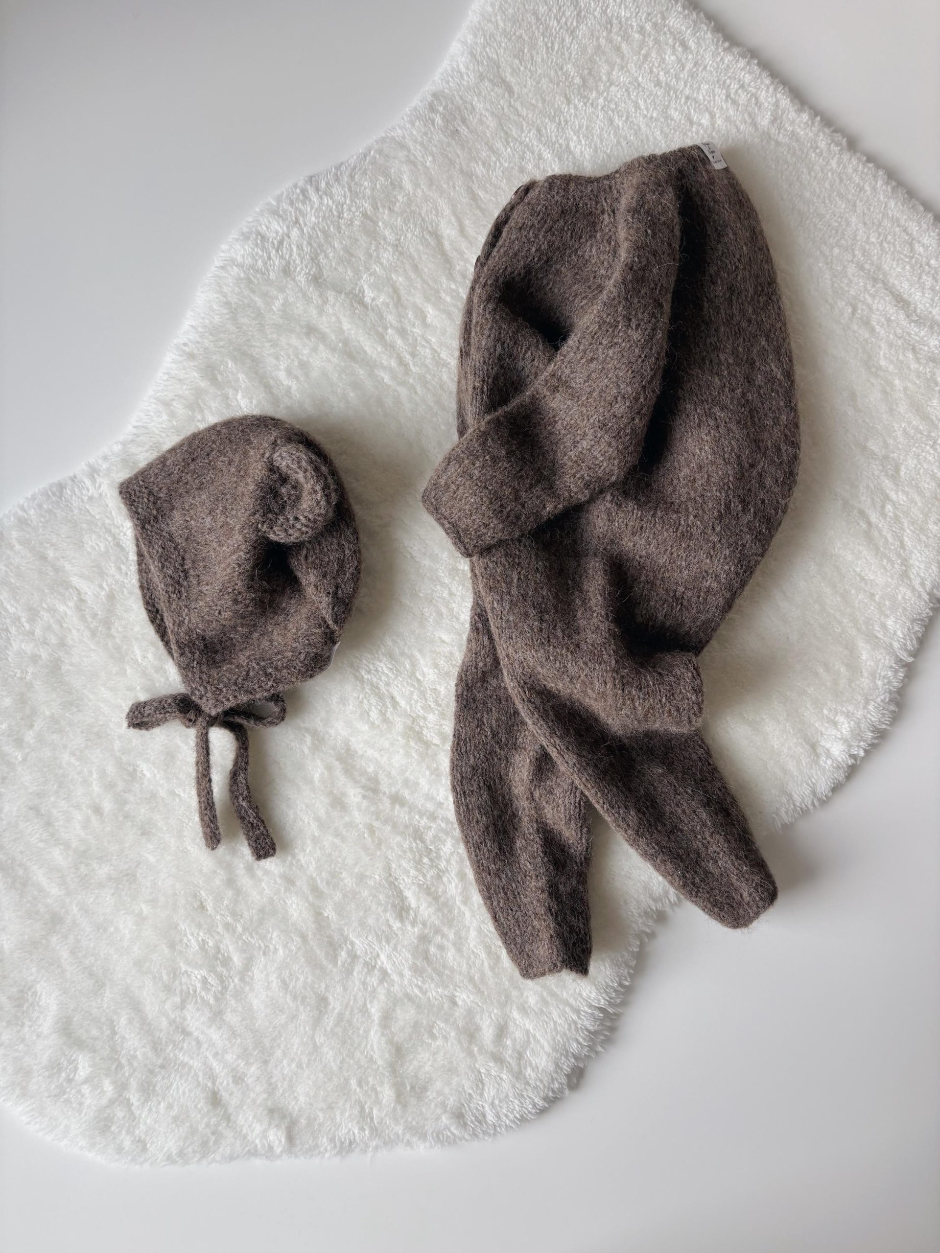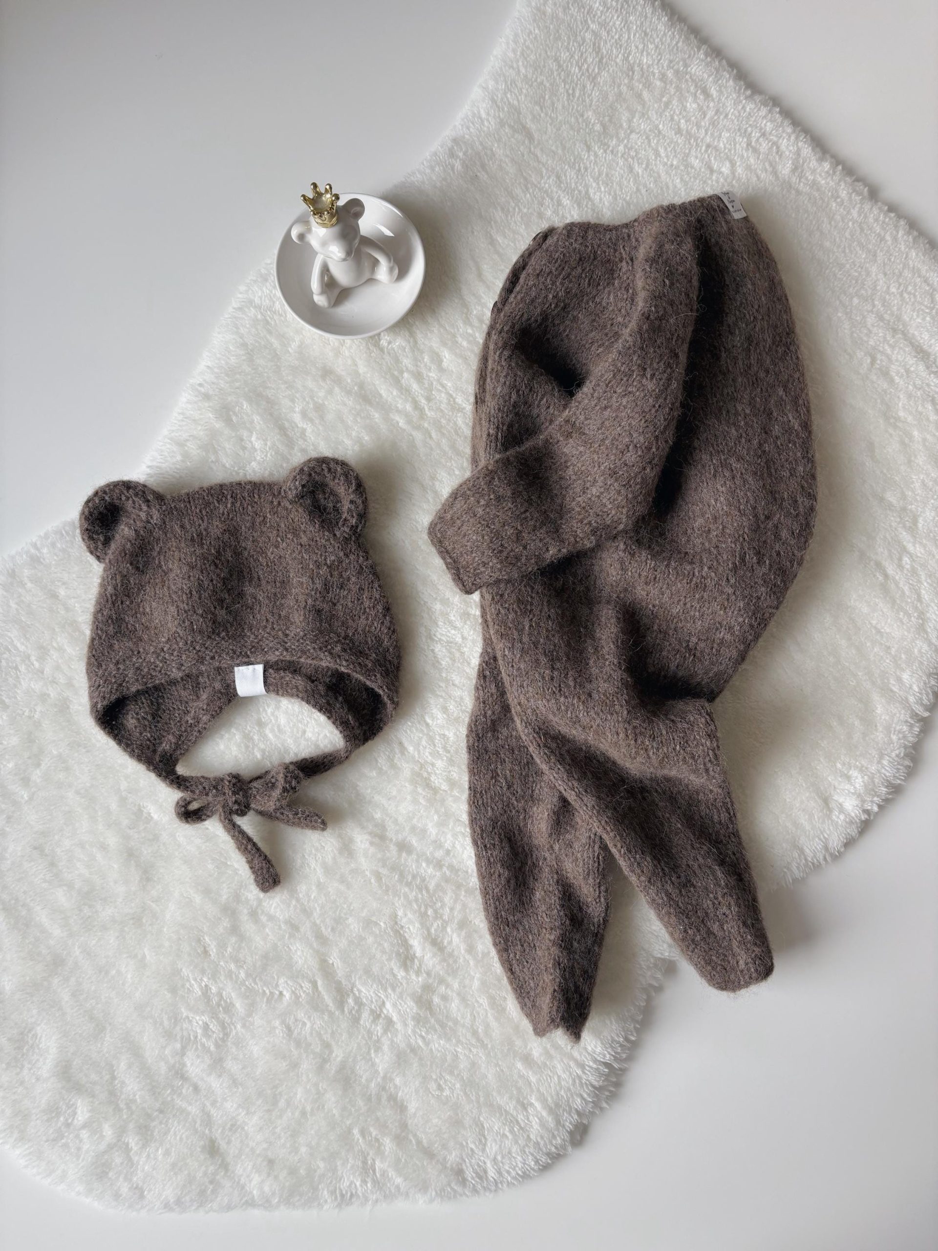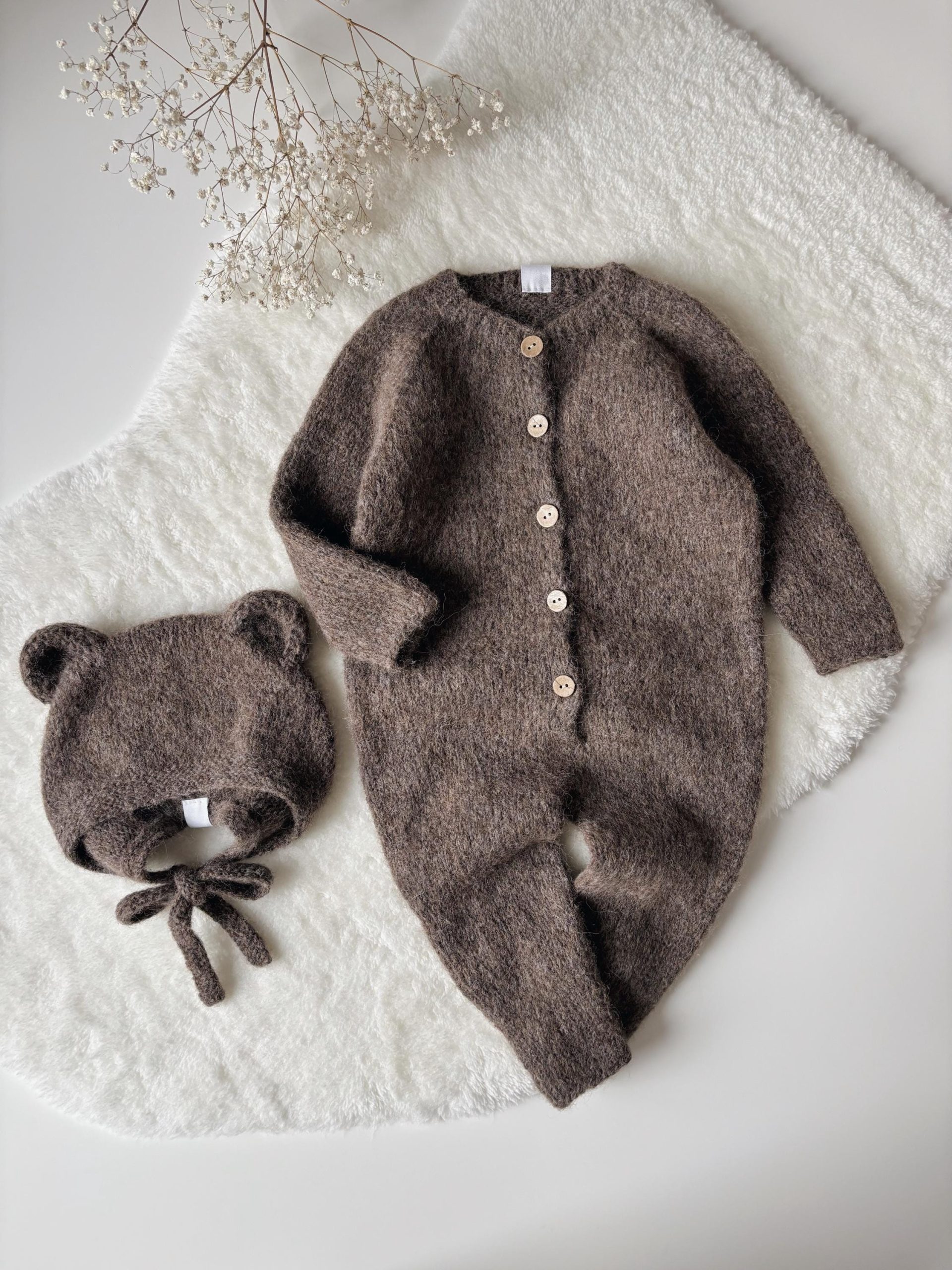 Baby Alpaca Knit Romper & Bear Bonnet Set – Handmade Outfit