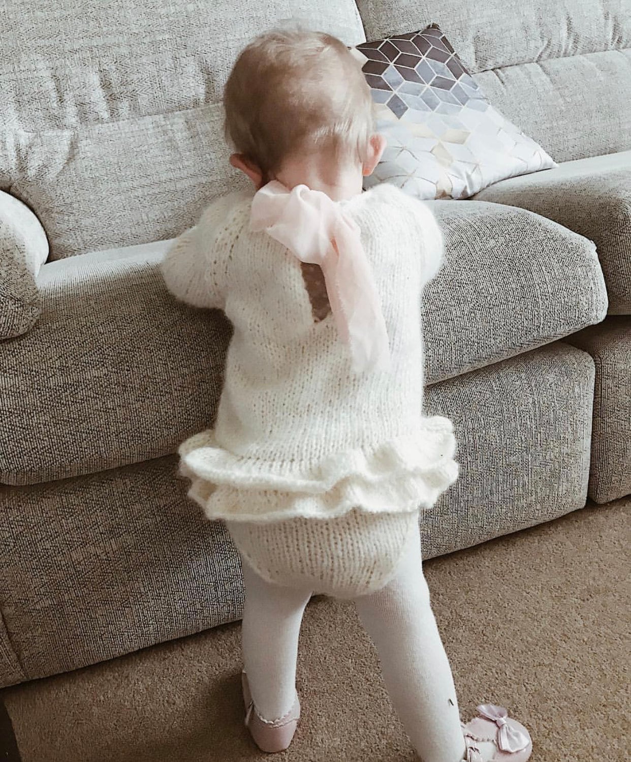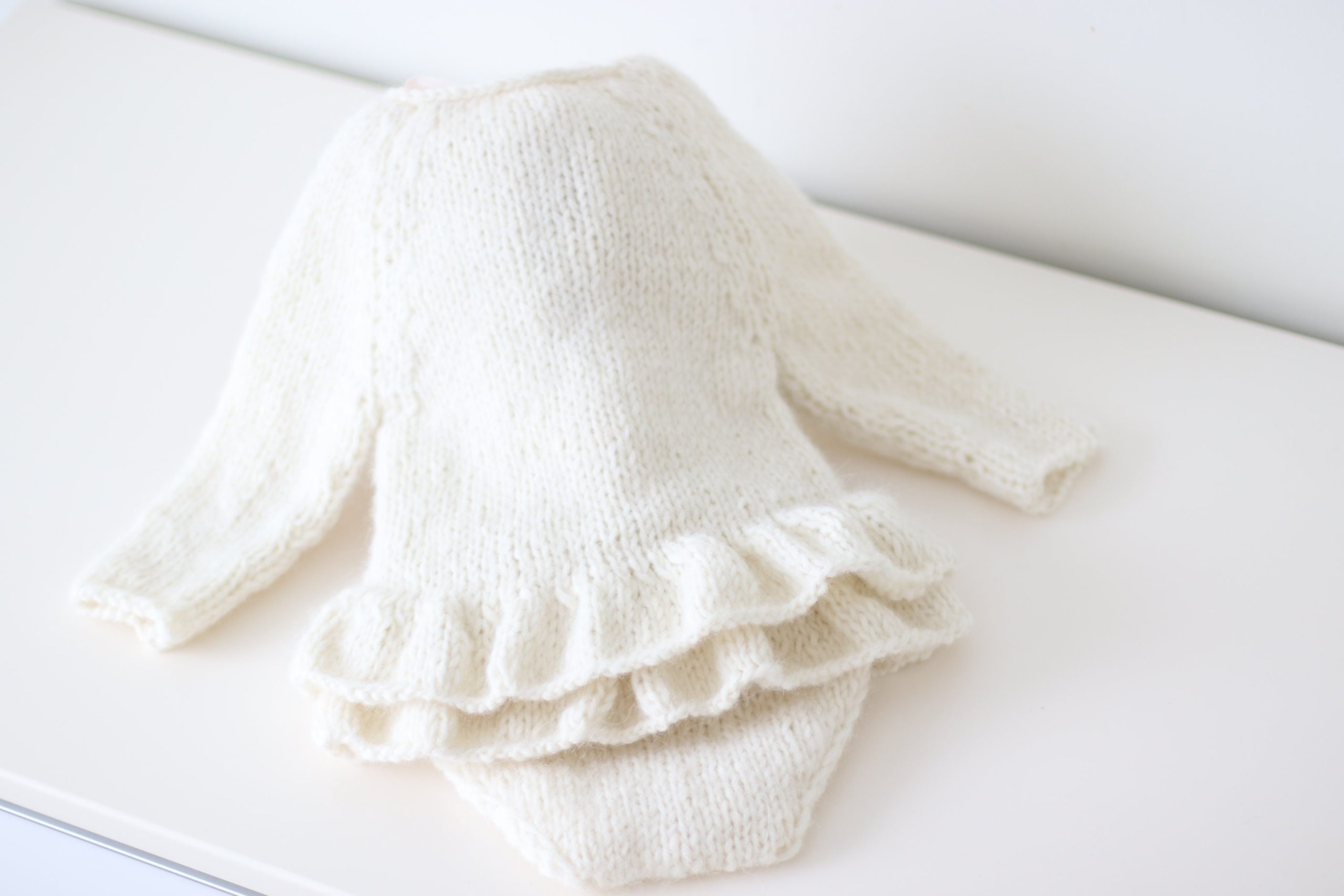 I have knitted this long sleeve romper from the wonderfully white royal baby alpaca yarn. This listing is for cute sitter baby long sleeve romper.