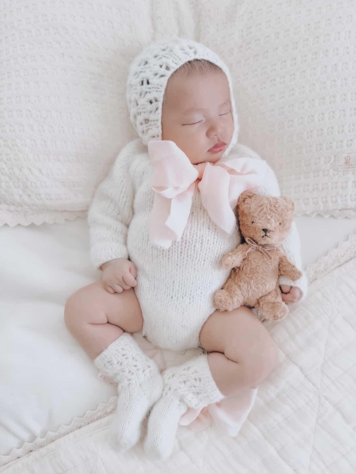 Knit Baby Alpaca Romper and Bonnet Set – Cream Photo Prop