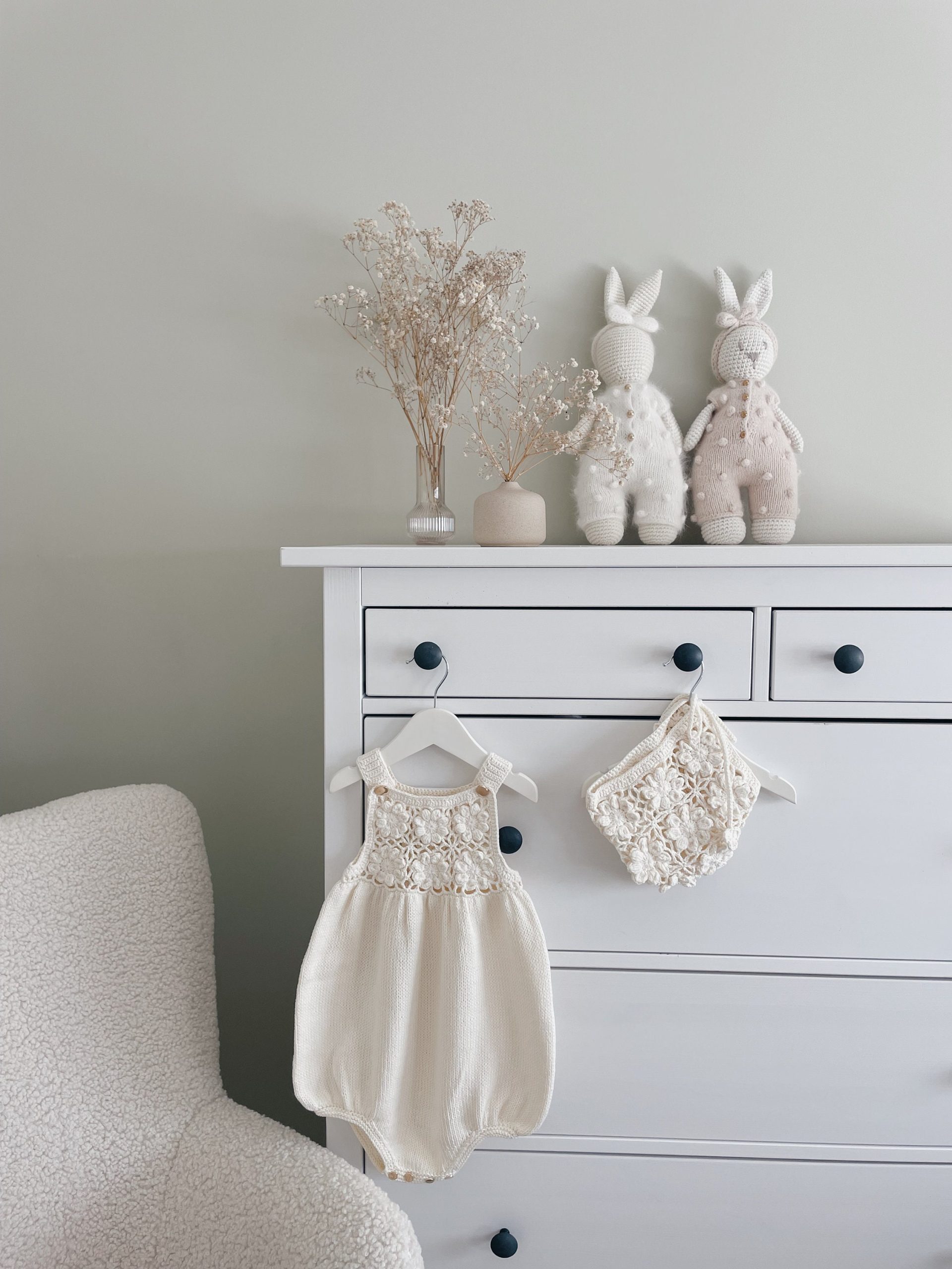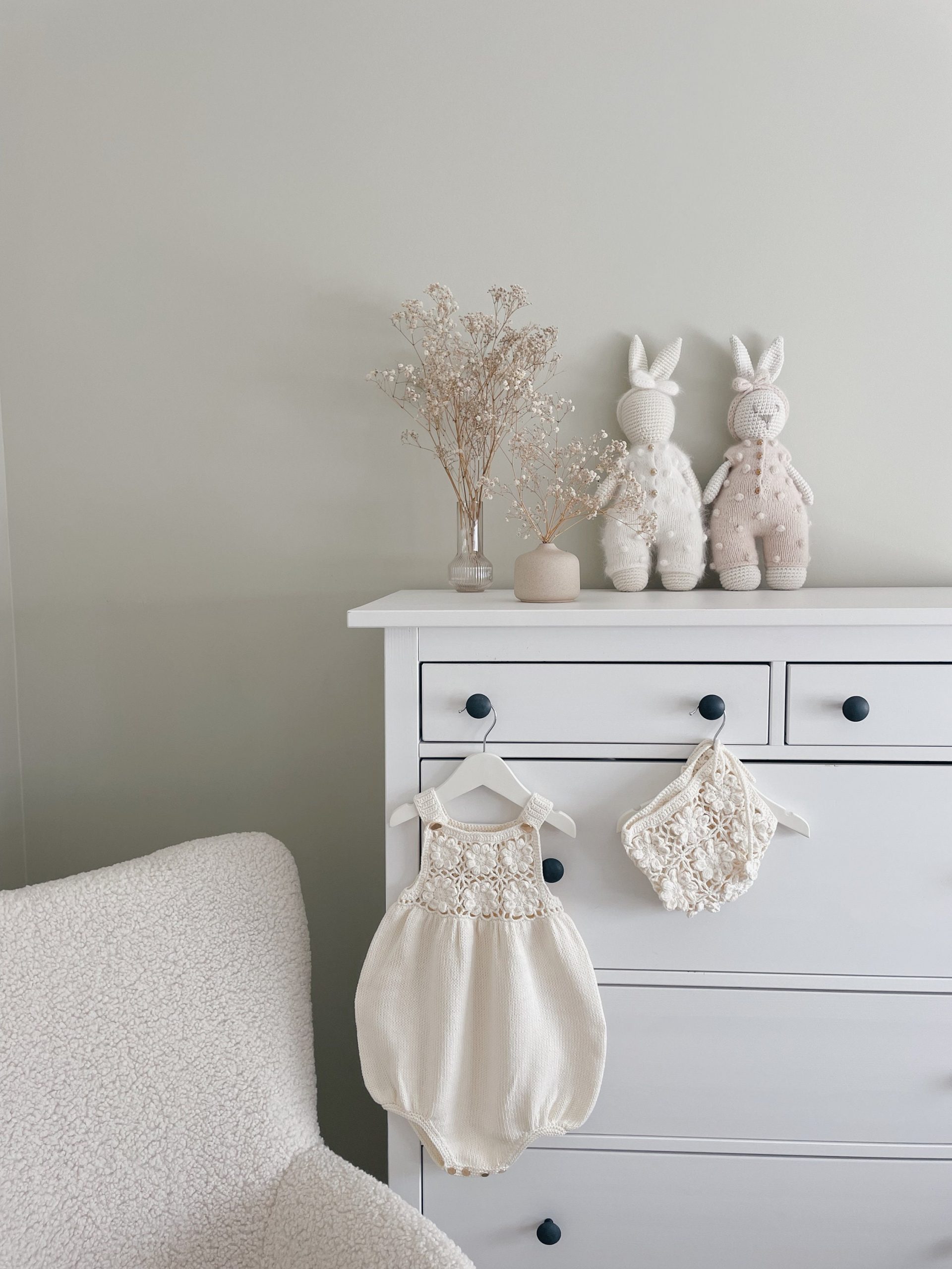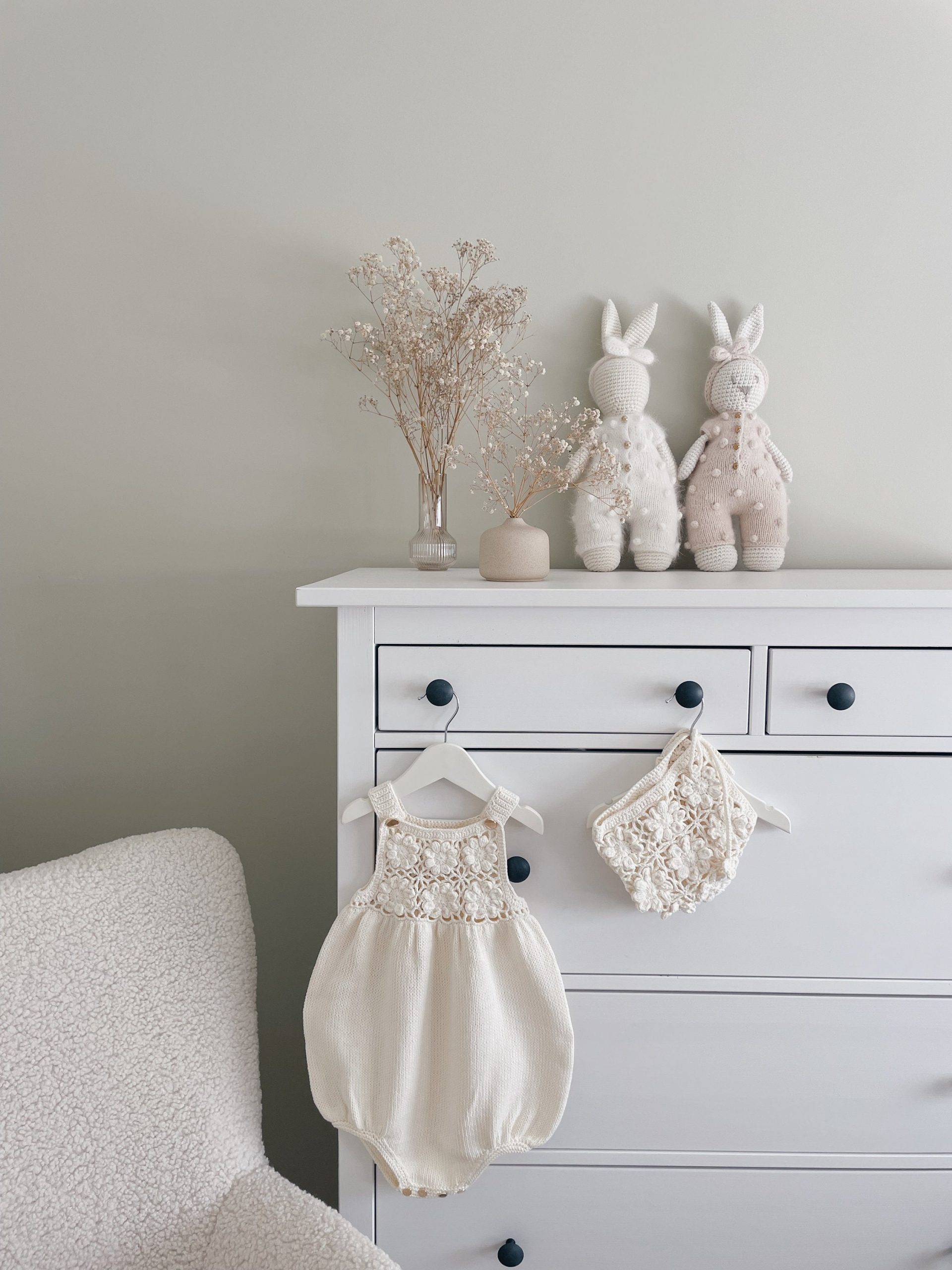 Alpaca Bunny Baby Set – Cream Romper and Bonnet