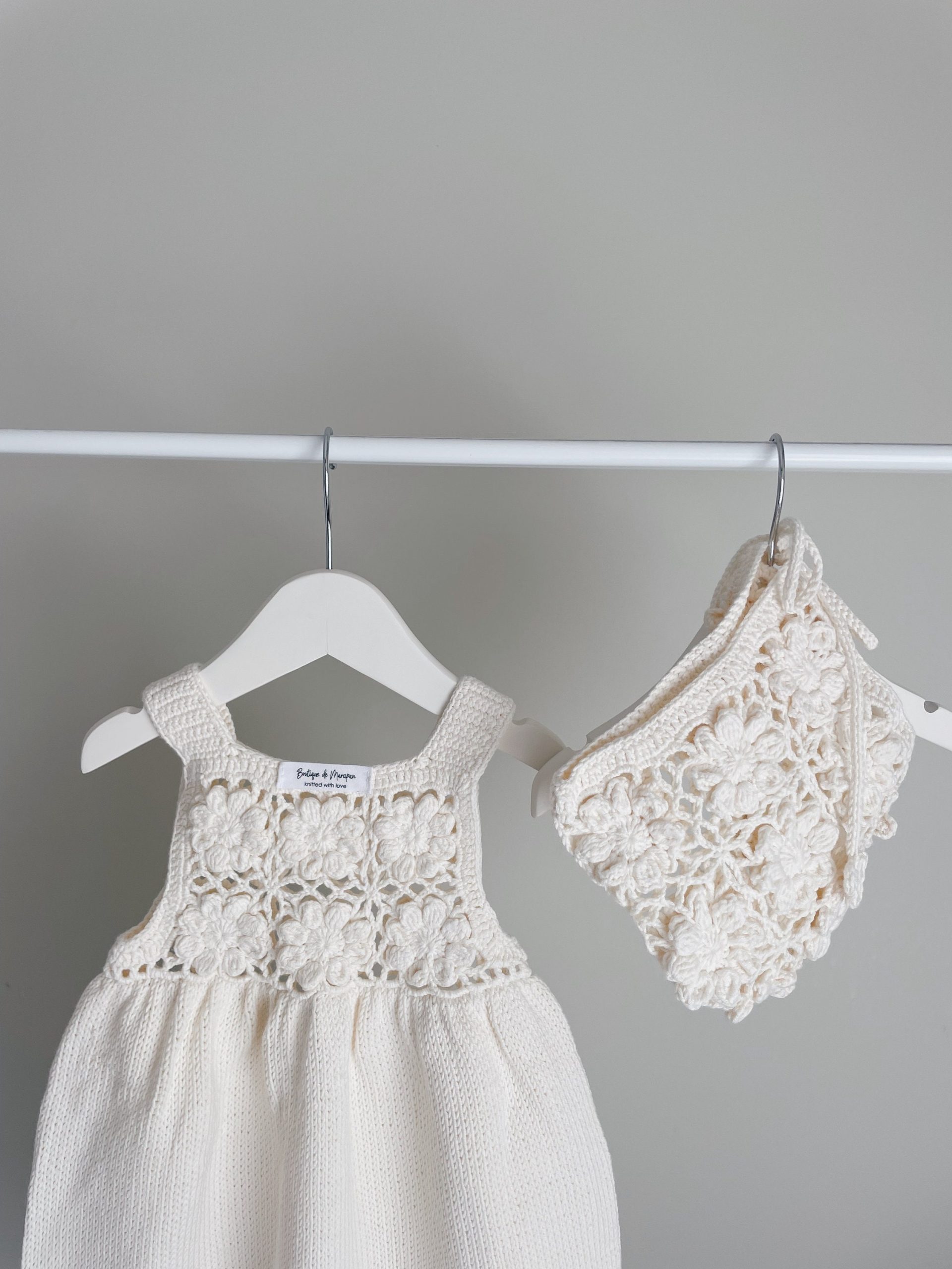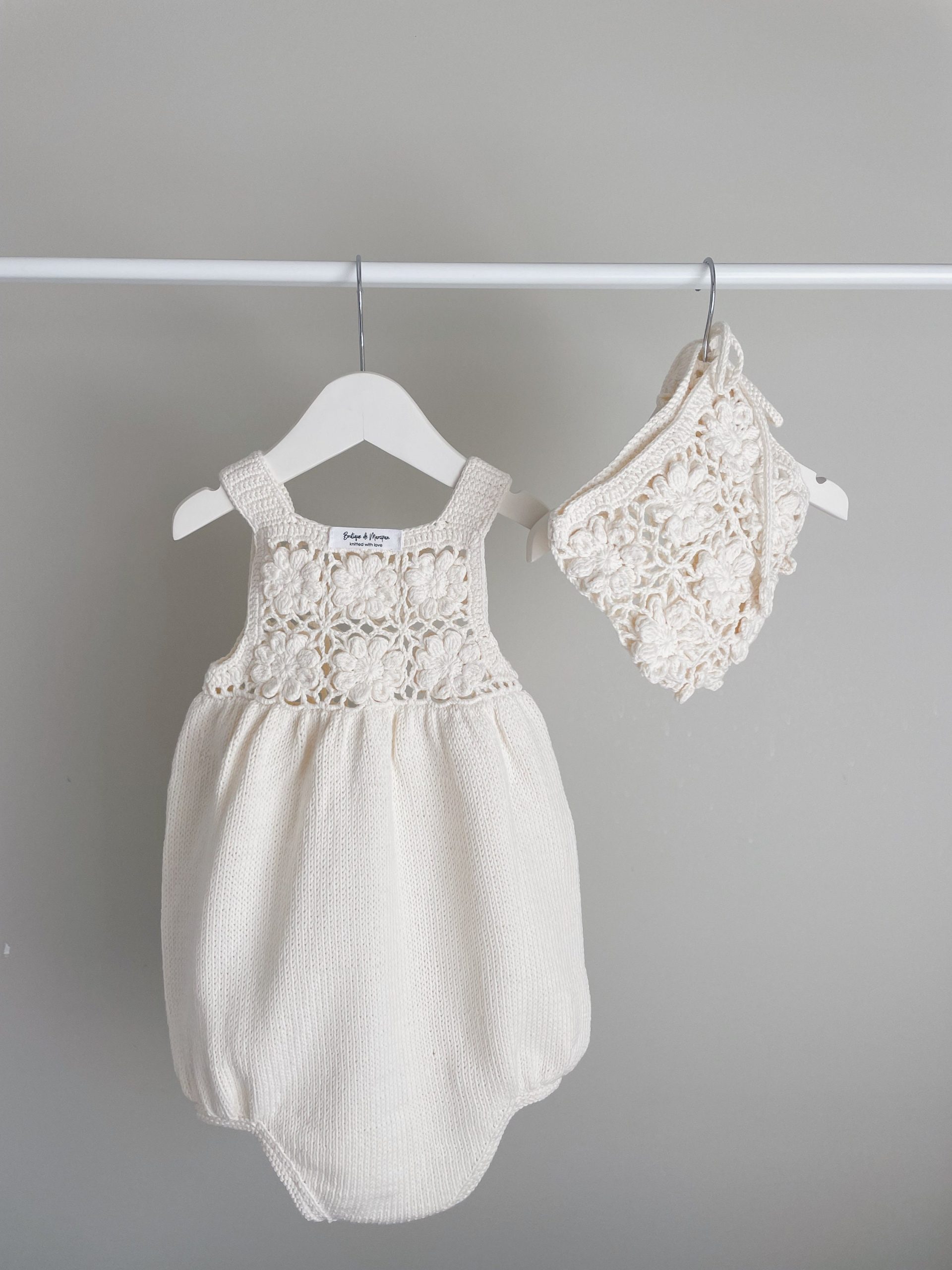 Baby Girl Romper and Bonnet Set – Cream Cotton Blend, Summer Outfit