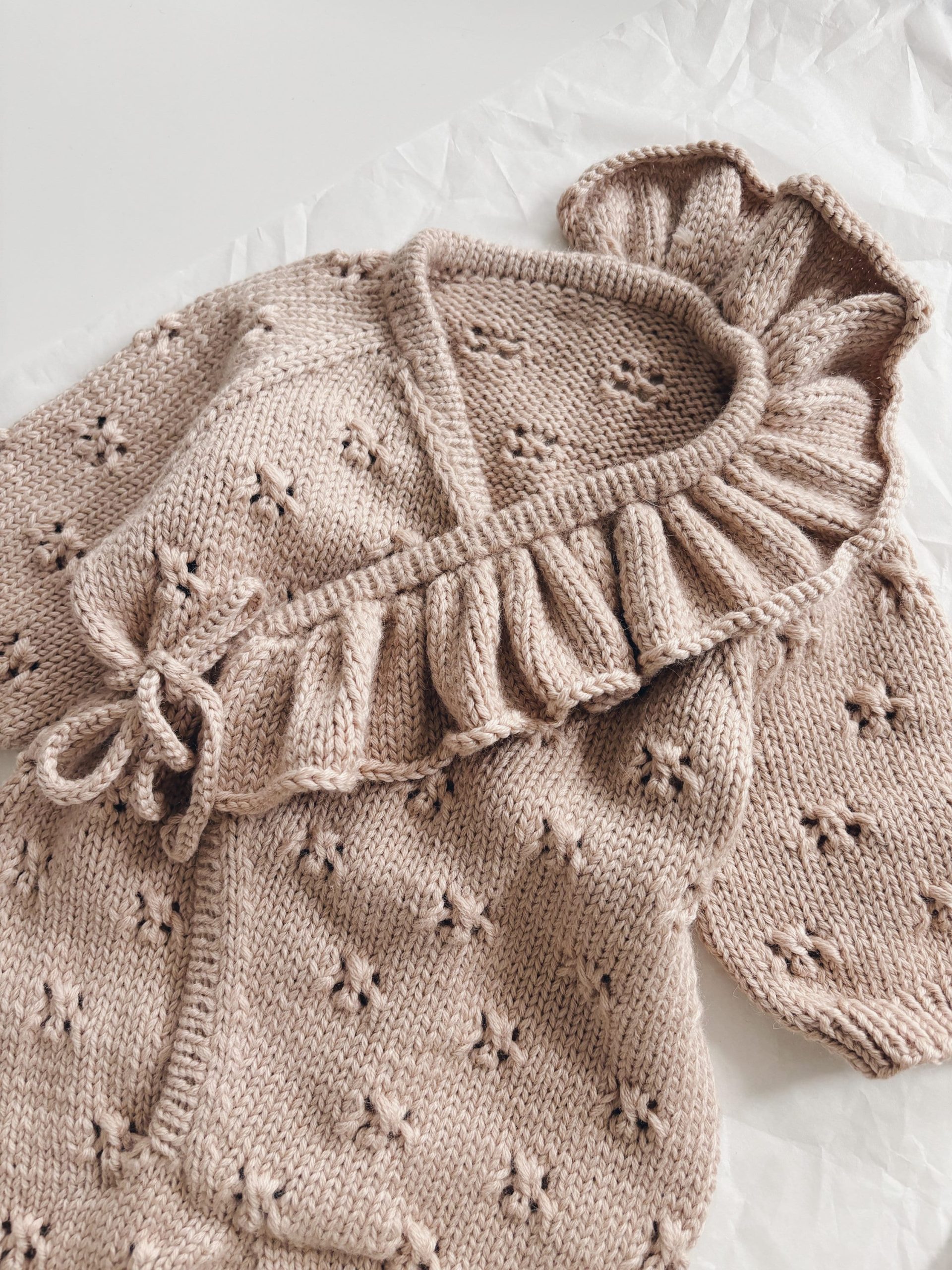 Merino Wool Baby Sweater and Bonnet Set – Cream Ruffle Neck