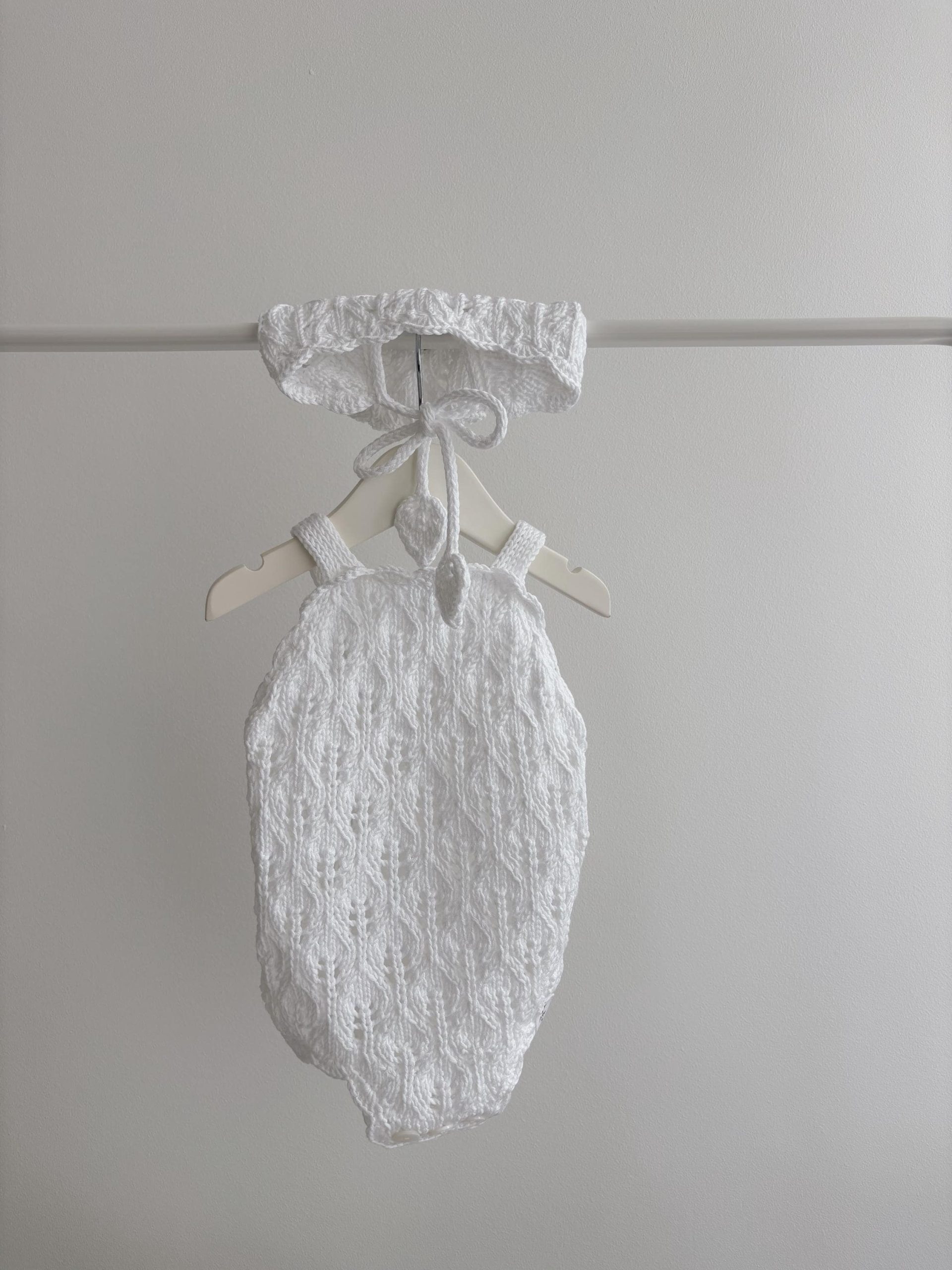 Hand Knit Baby Alpaca Romper and Bonnet Set – Cream Photo Prop