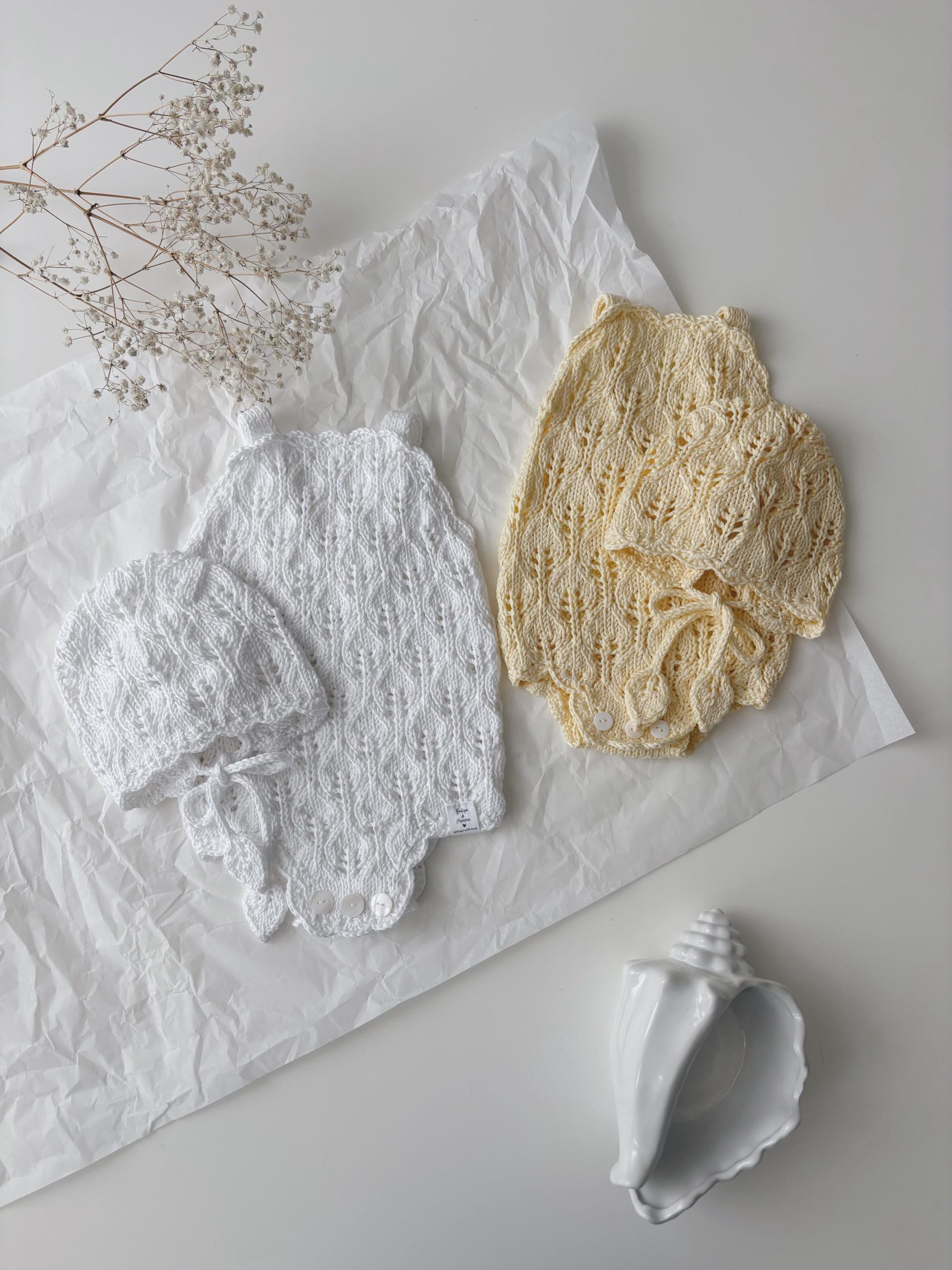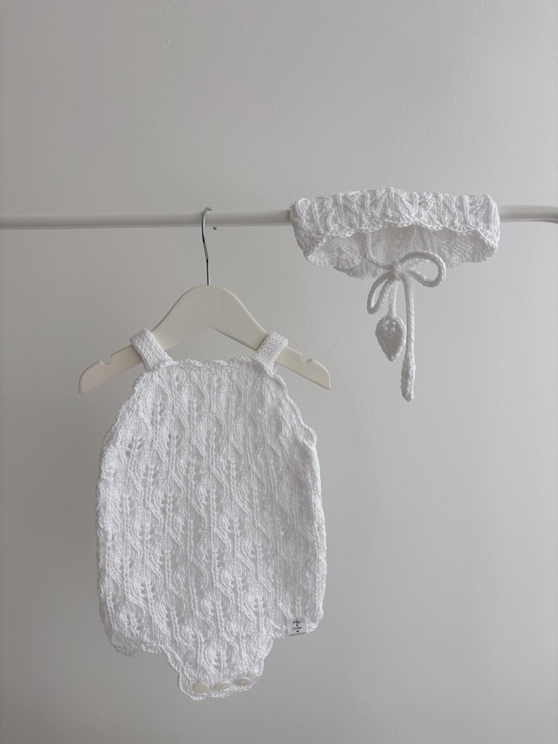 Cotton Baby Romper and Bonnet Set – Popcorn Knit Outfit
