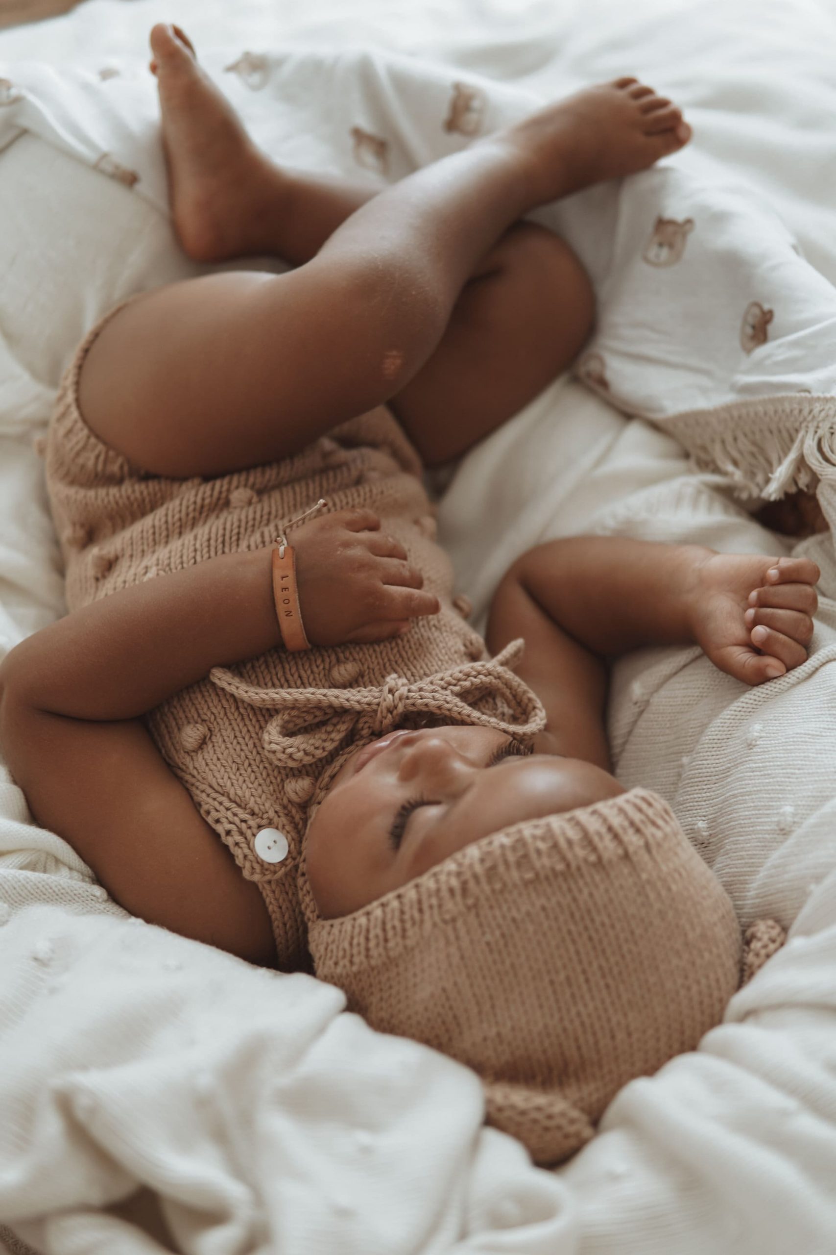 Knit Baby Alpaca Romper and Bonnet Set – Cream Photo Prop