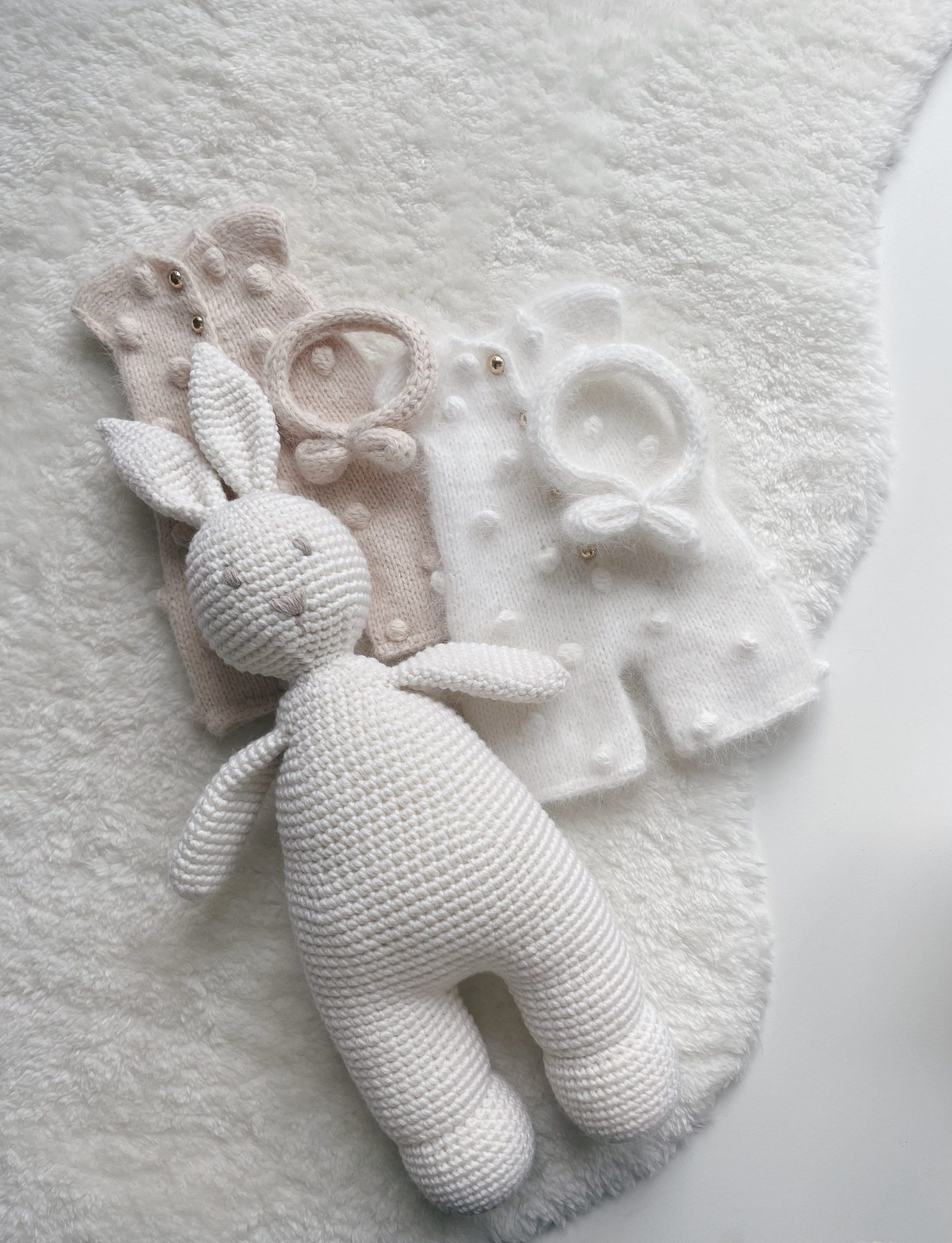 Alpaca Bunny Baby Set – Cream Romper and Bonnet