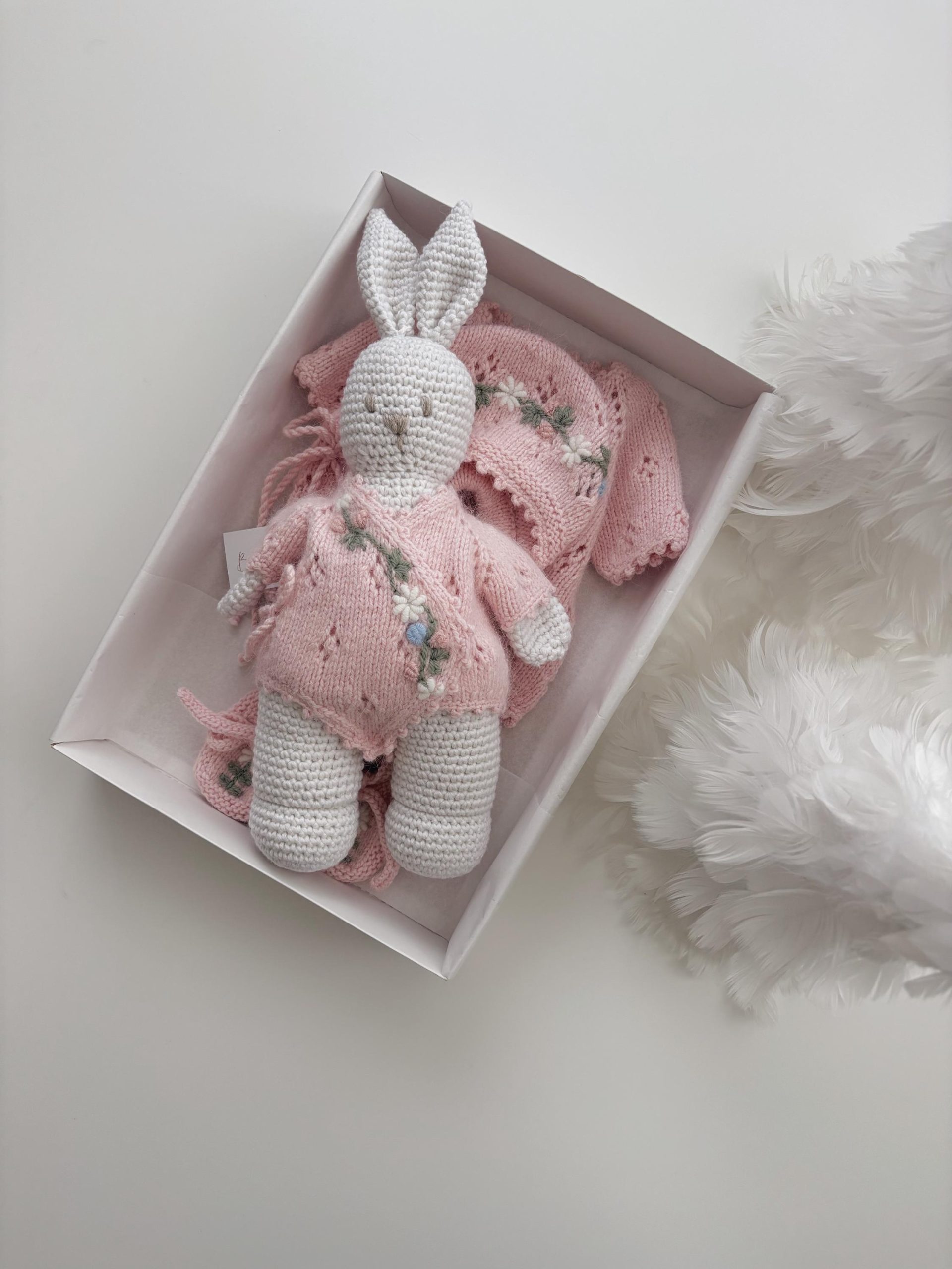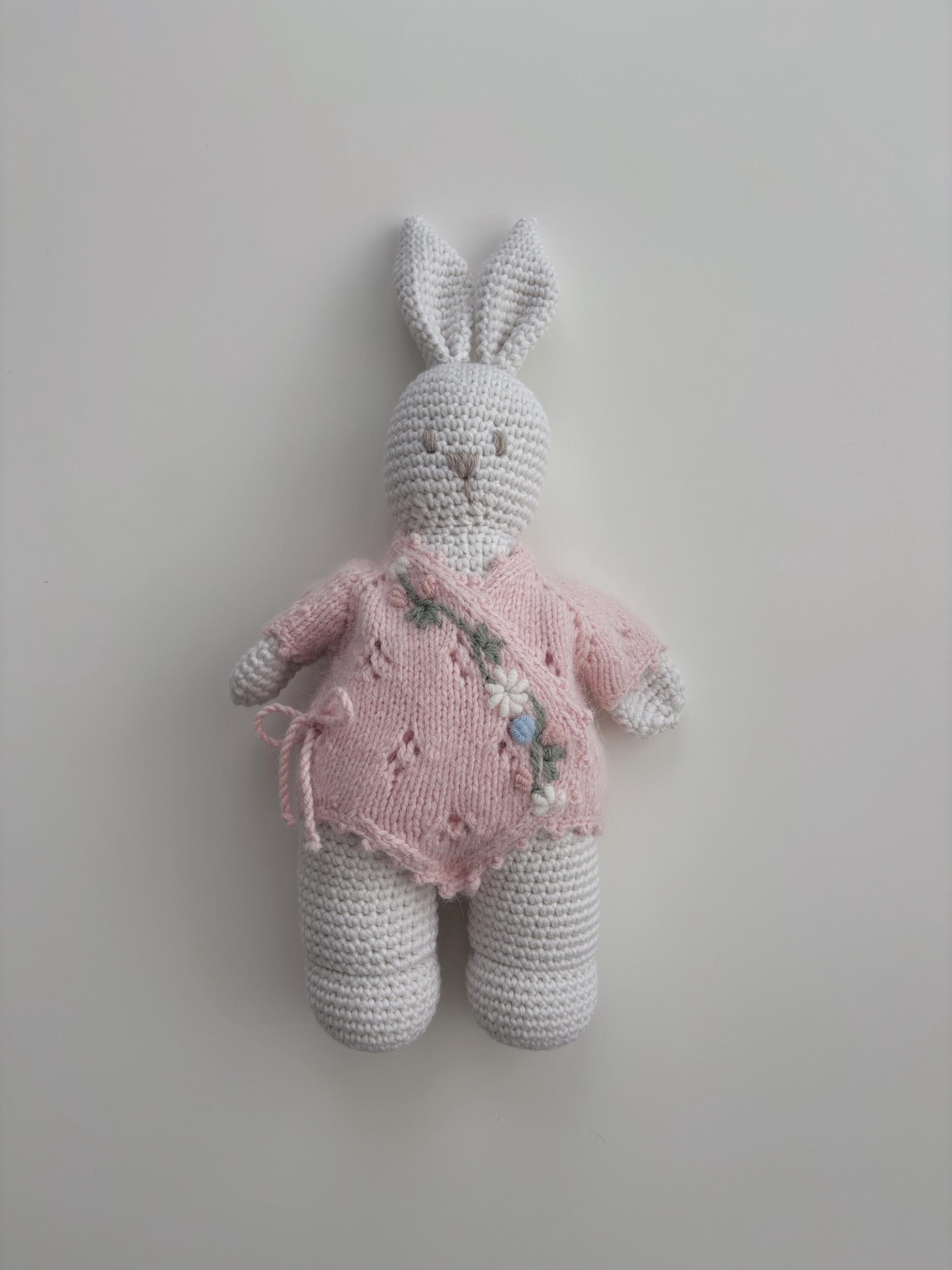 Crochet Bunny Toy – Merino Wool Cuddle Toy, Pink Outfit