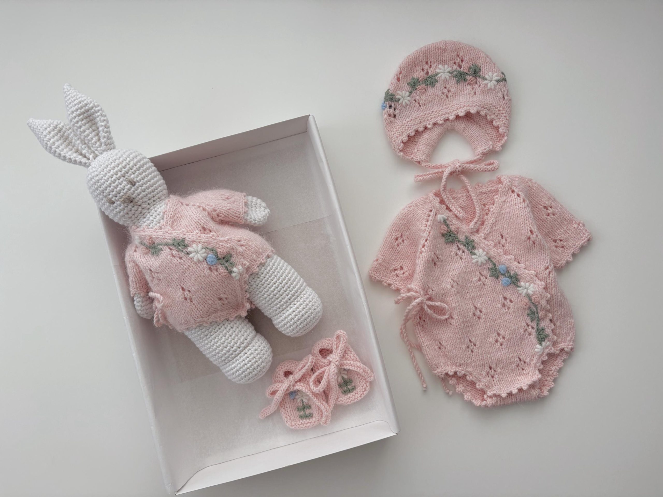Pale Pink Baby Romper and Bunny Bonnet Set – Merino Mohair Blend