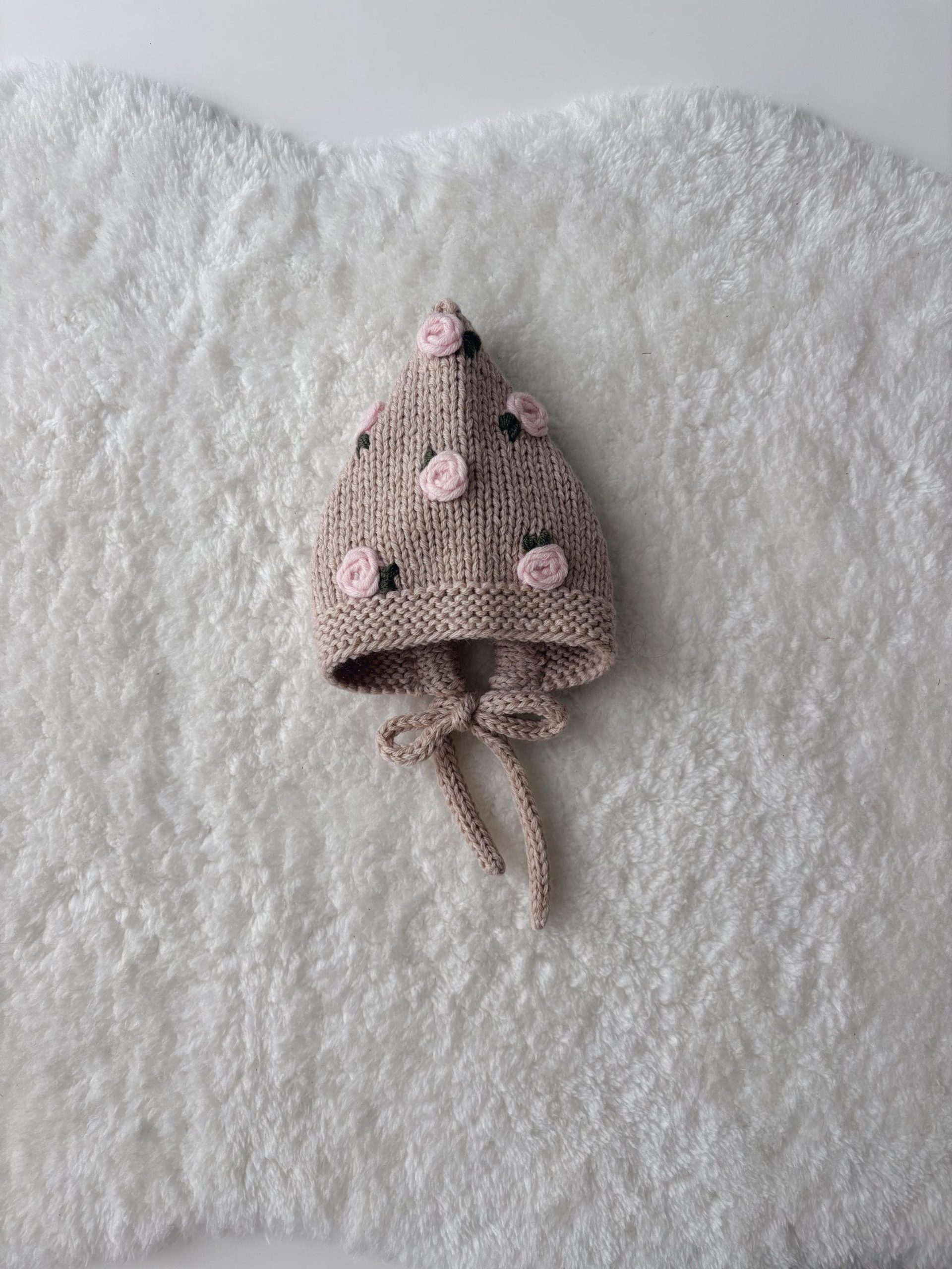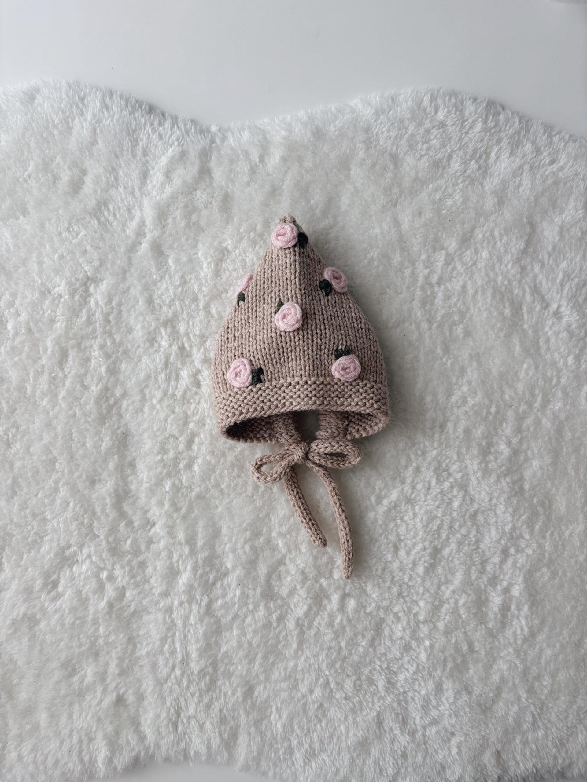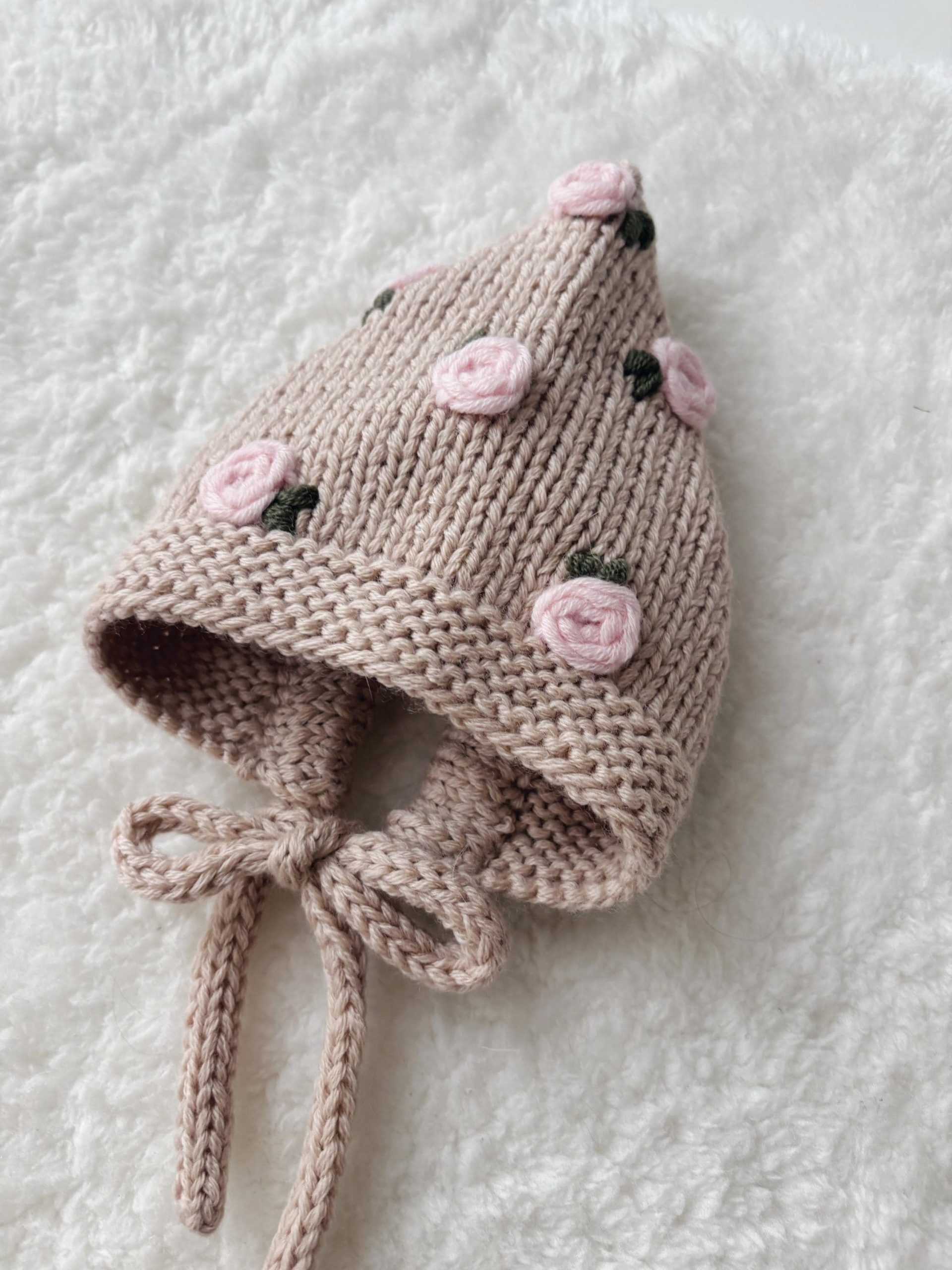 Embroidered Merino Baby Bonnet – Newborn Photography Prop