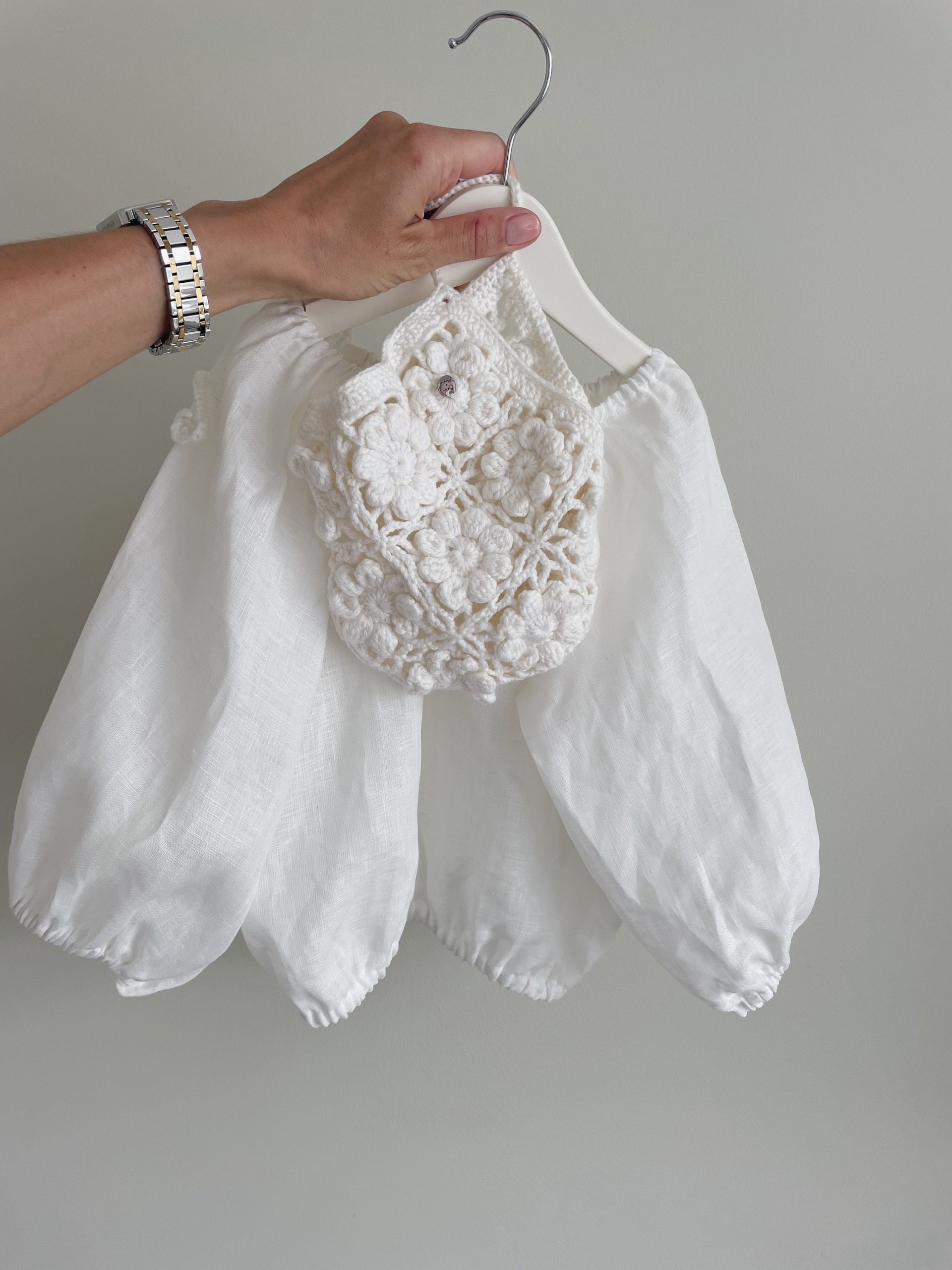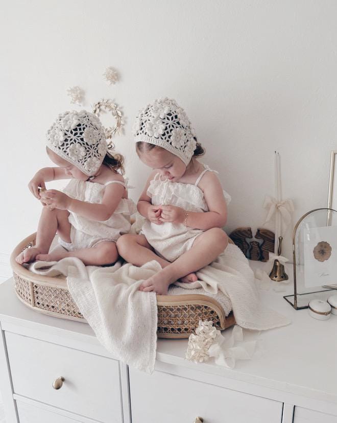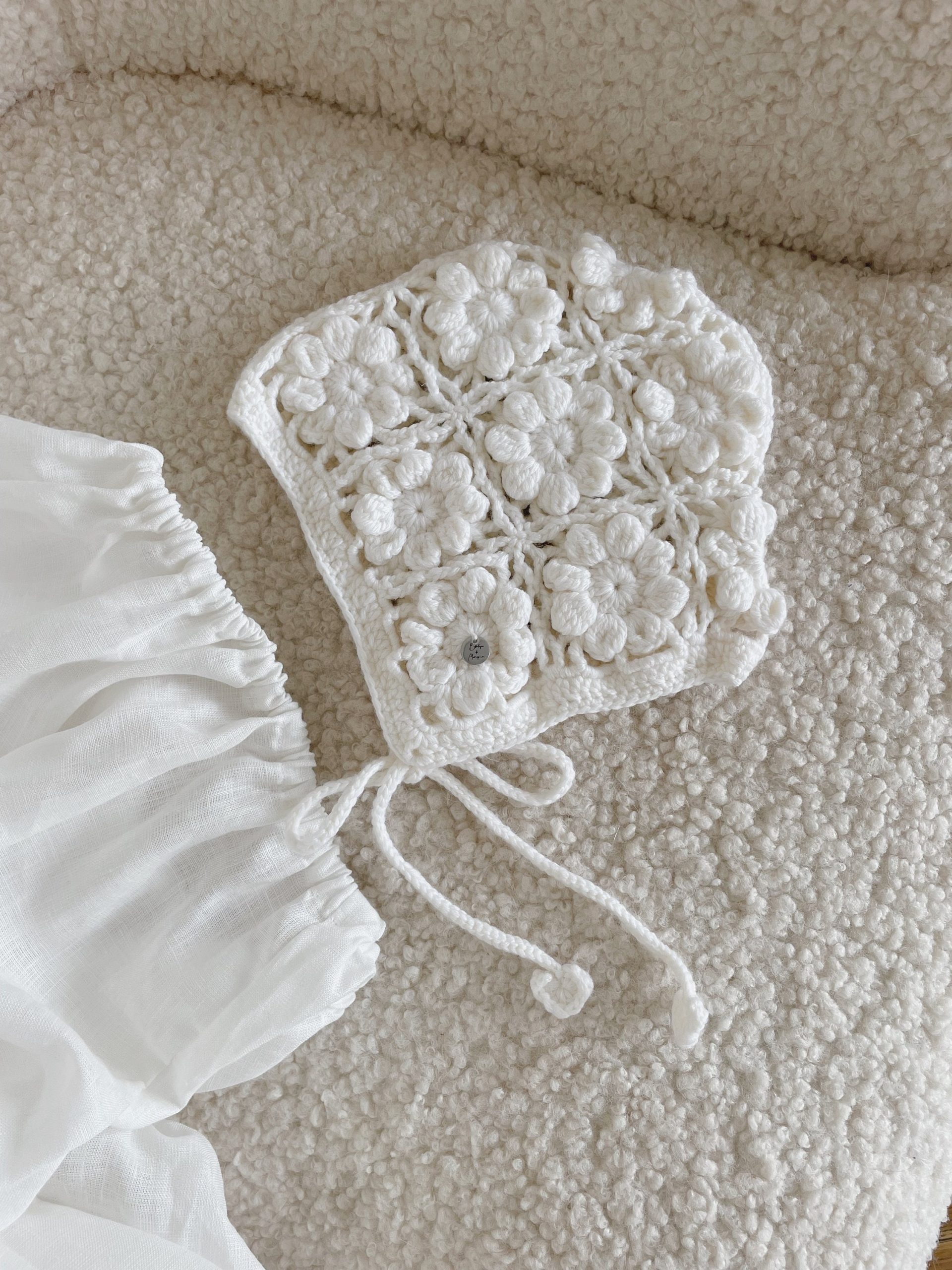 Hand Crochet Baby Bonnet – Cream Flower, Merino Wool