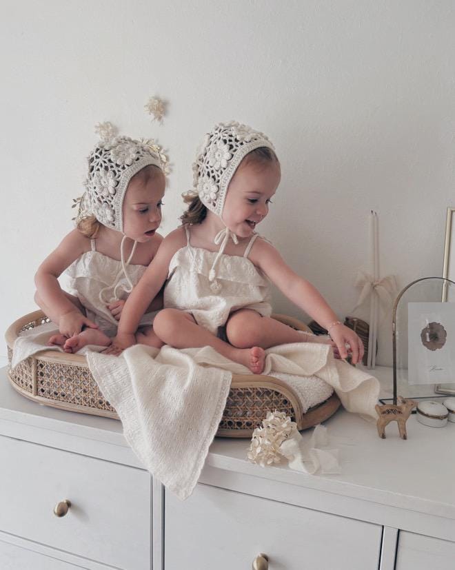 Cotton Knit Baby Romper Set – Cream Bonnet