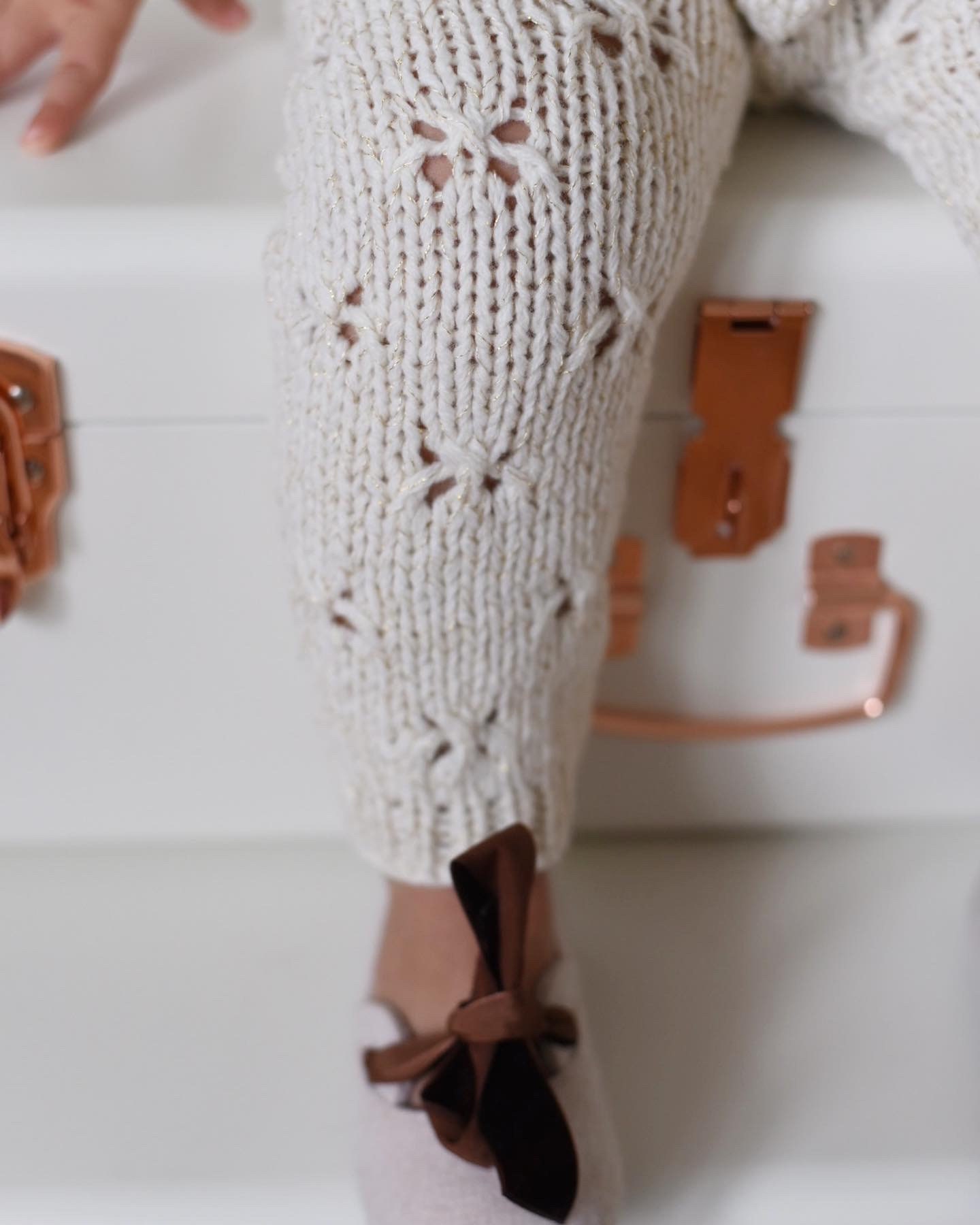 Alpaca Knit Baby Romper and Bonnet Set – Cream Outfit