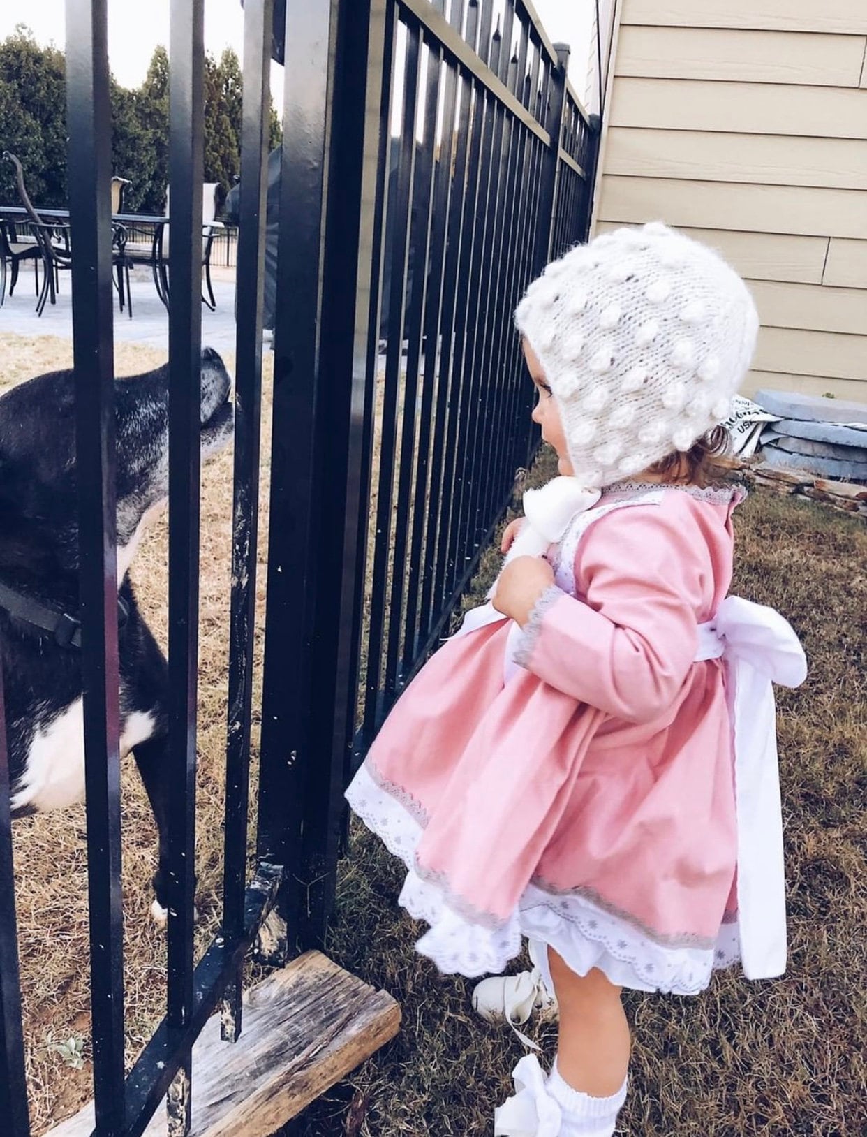 Hand knitted baby girl bonnet of wonderfully soft cream royal baby alpaca yarn. This baby girl bonnet is an adorable photographers prop. I recommend hand washing in cold water and laying flat to dry.