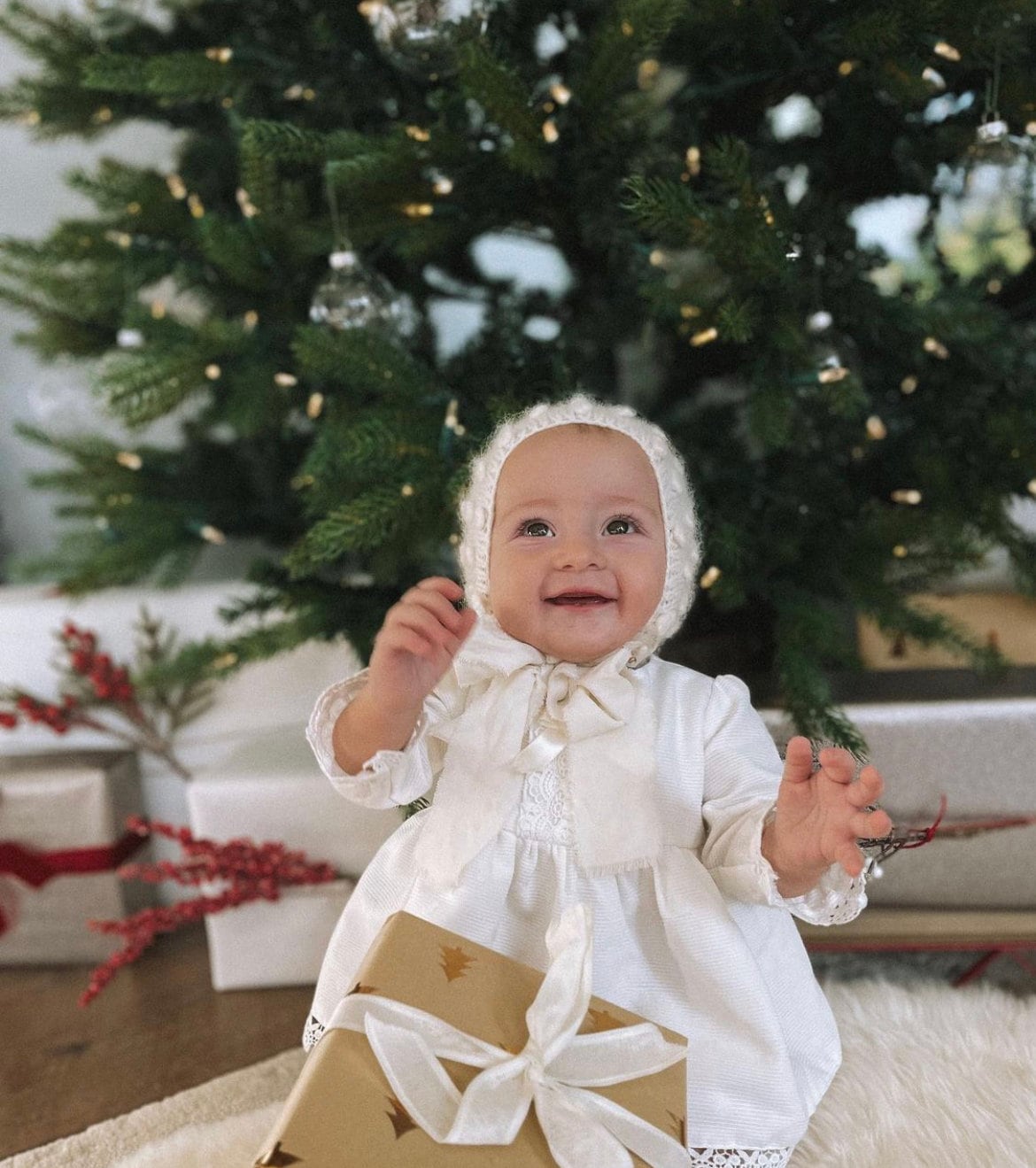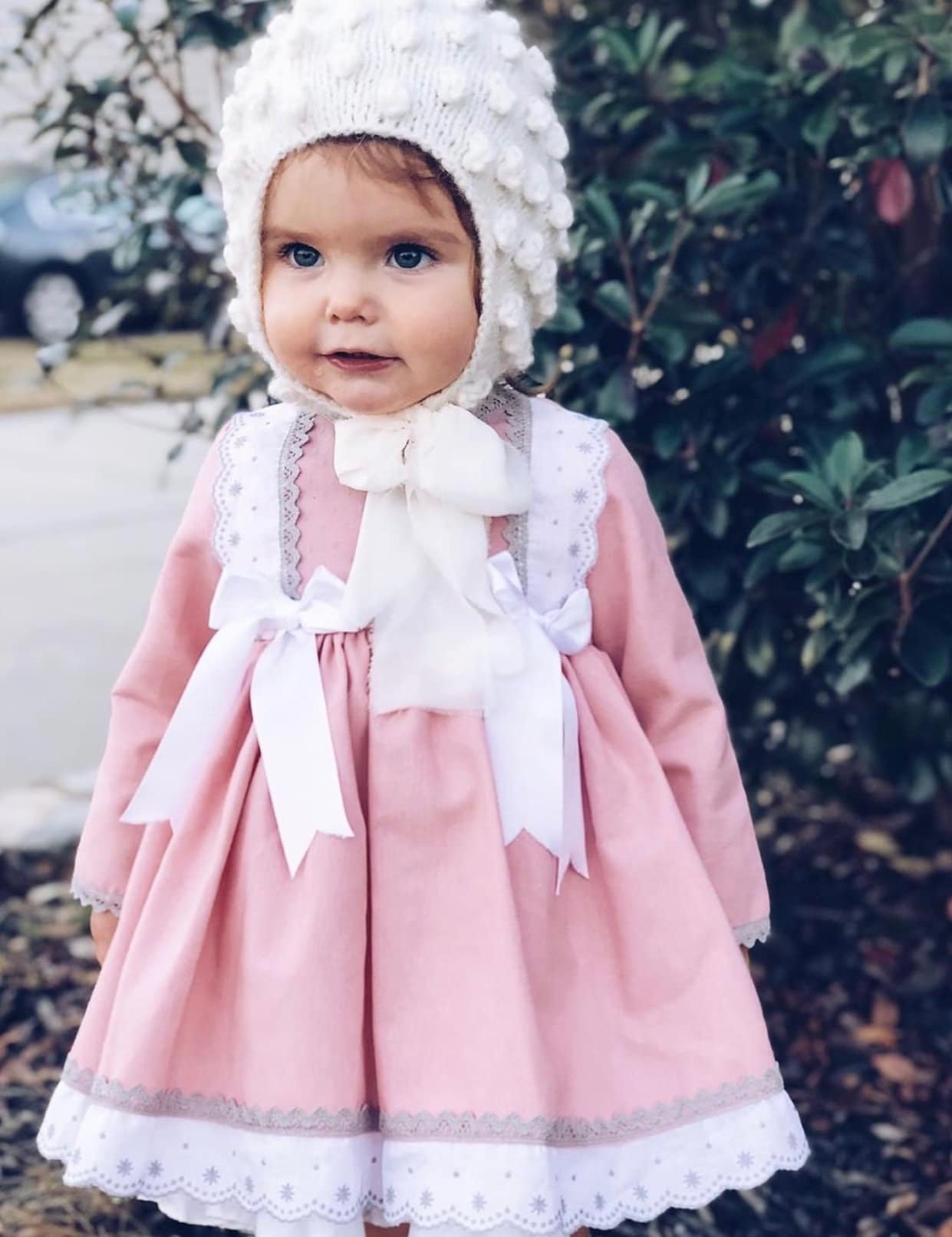 Embroidered Merino Baby Romper and Bonnet Set – Knitted Photo Prop