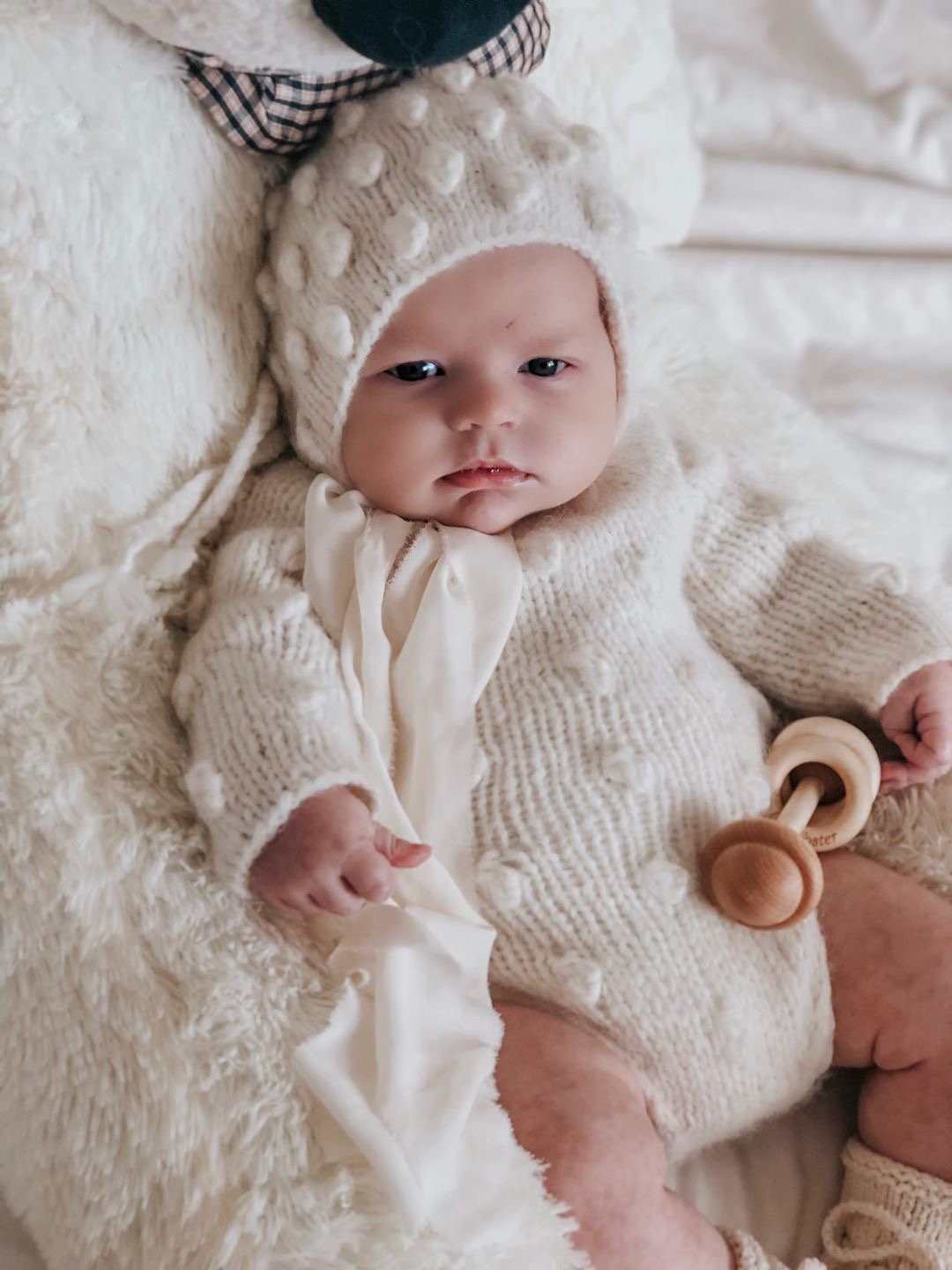 Knit Baby Alpaca Romper and Bonnet Set – Cream Photo Prop