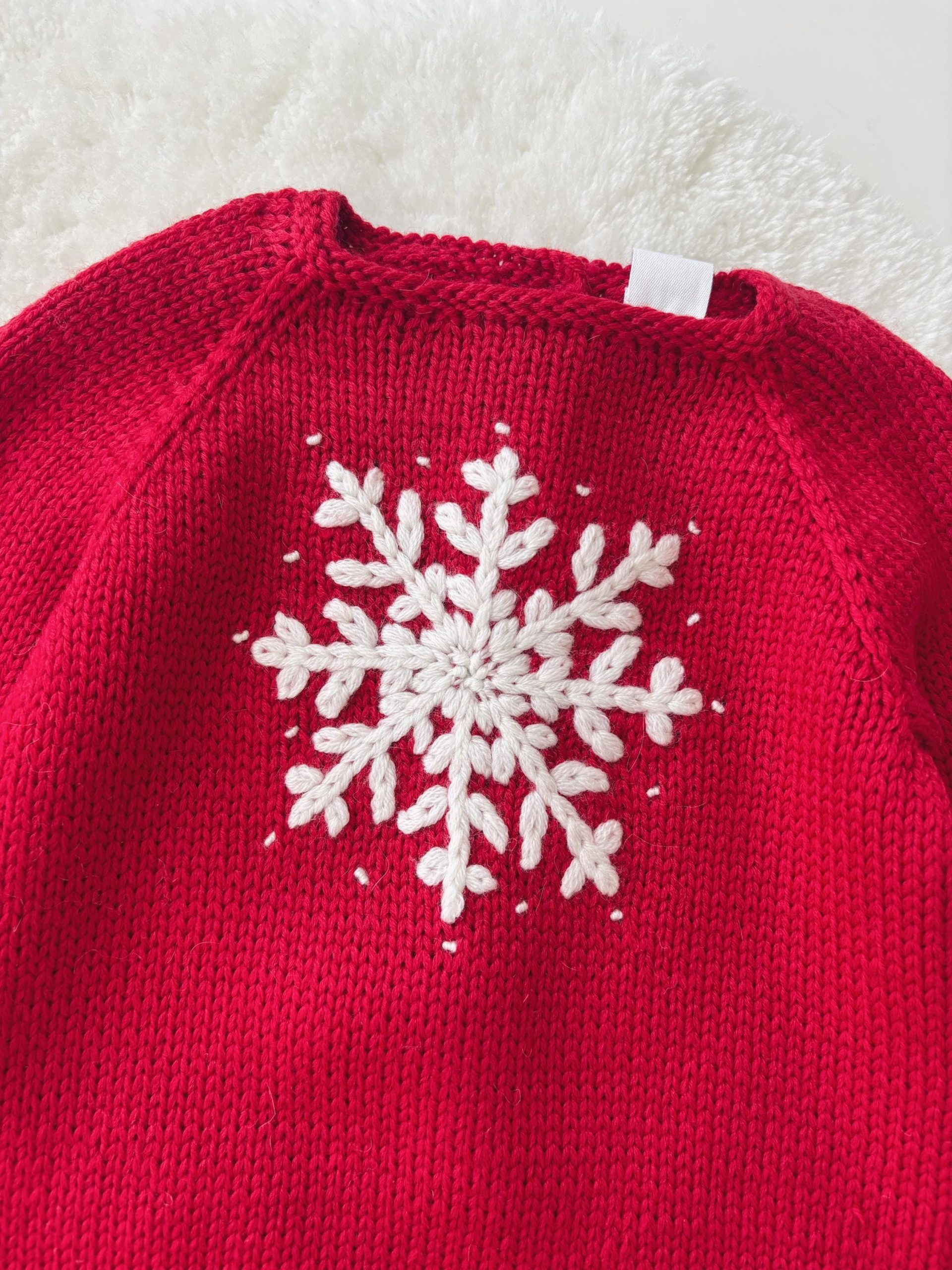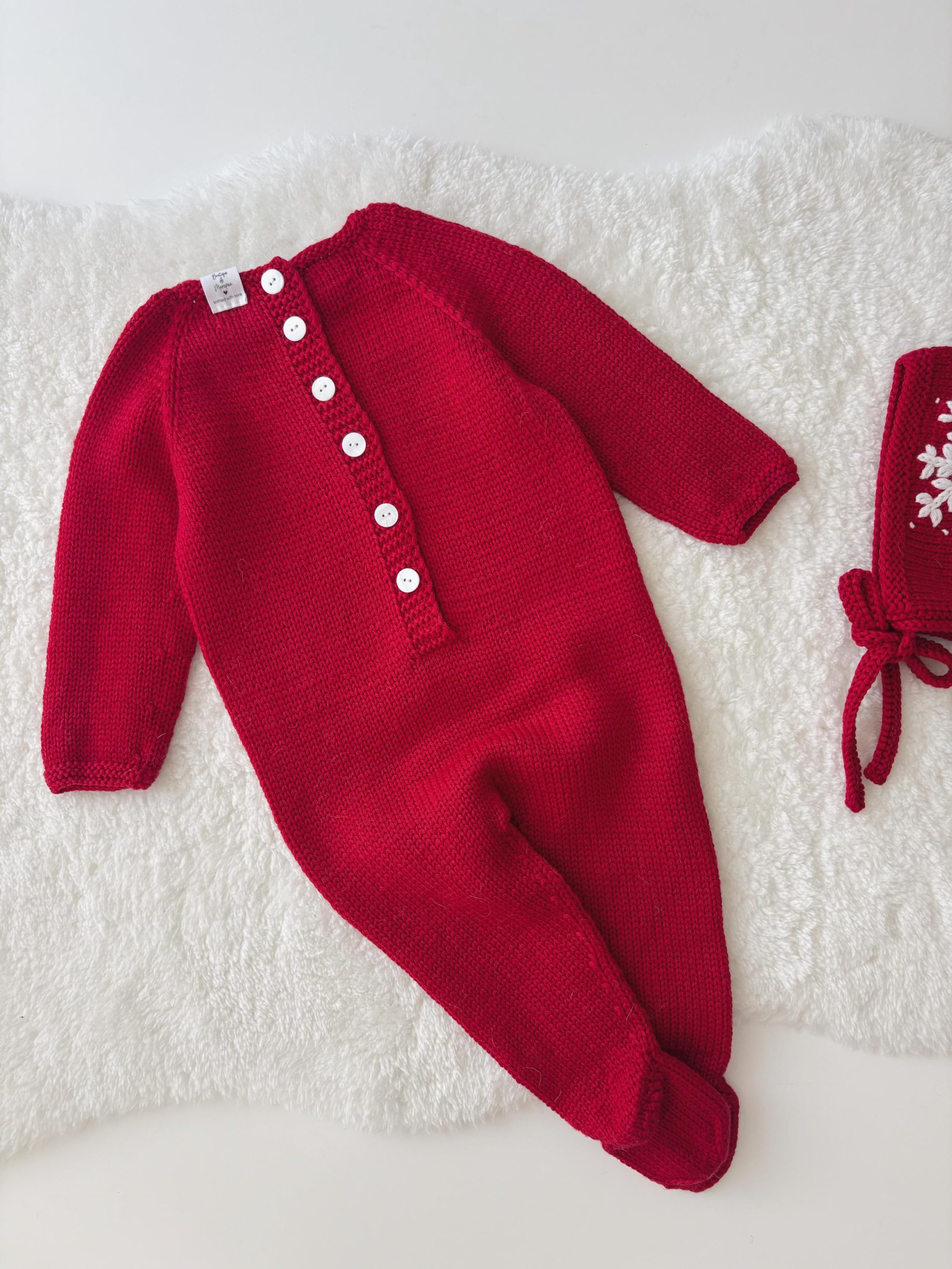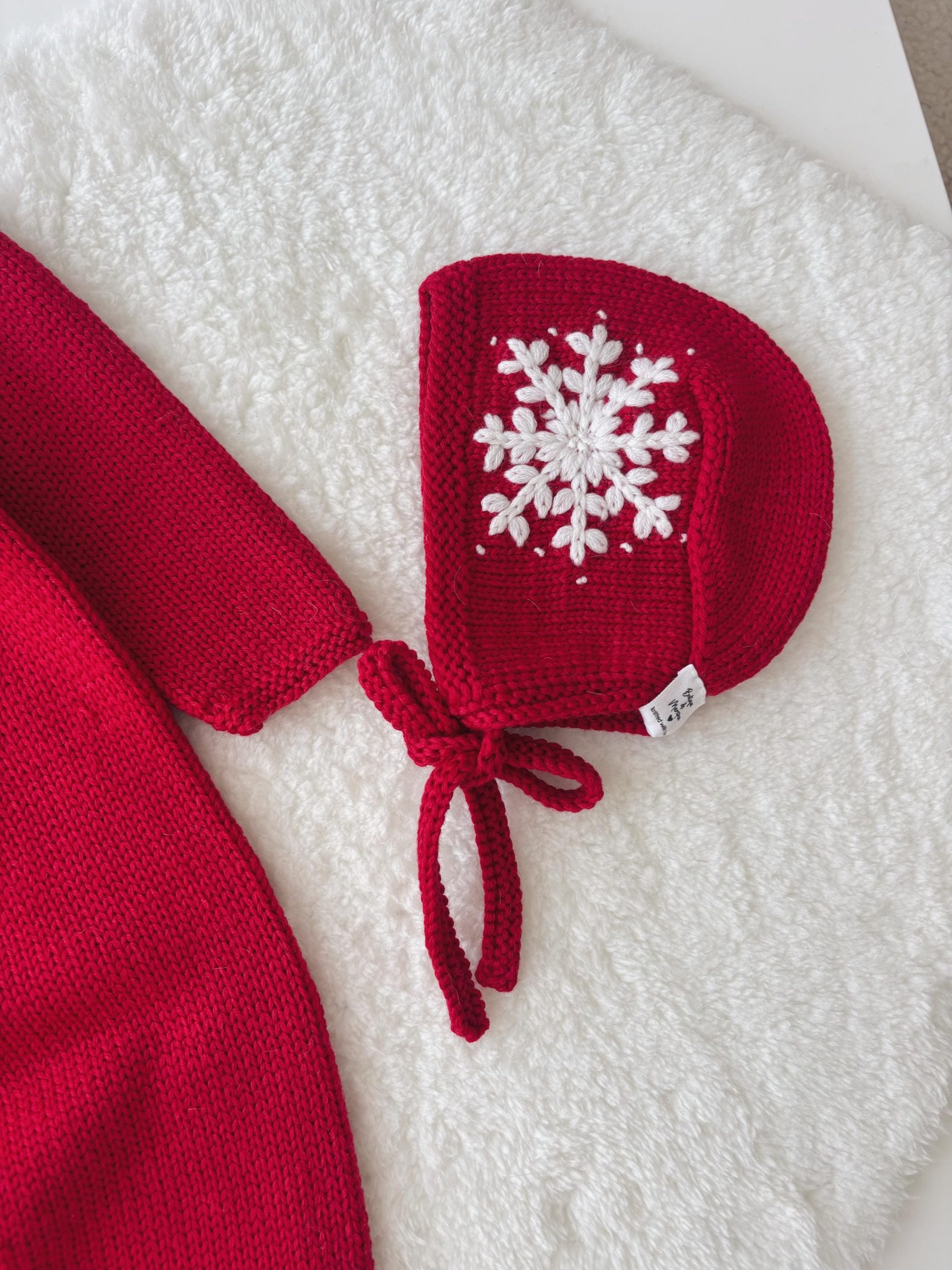 Knit Merino Baby Romper and Bonnet Set – Red Snowflake Outfit